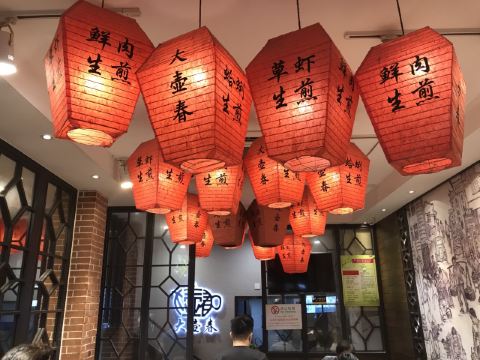 Dahuchun (Yunnan South Road)大壶春云南南路店,这家中式生煎店靠近大世界地铁站附近,生意很好的哦。大壶春的生煎馒头深受不少老上海人的喜爱,价格不贵,性价比却是不错的。生煎个头不小,皮子里边的肉汁水比较充足,色香味俱佳。排骨年糕什么的特色小吃别具滋味。