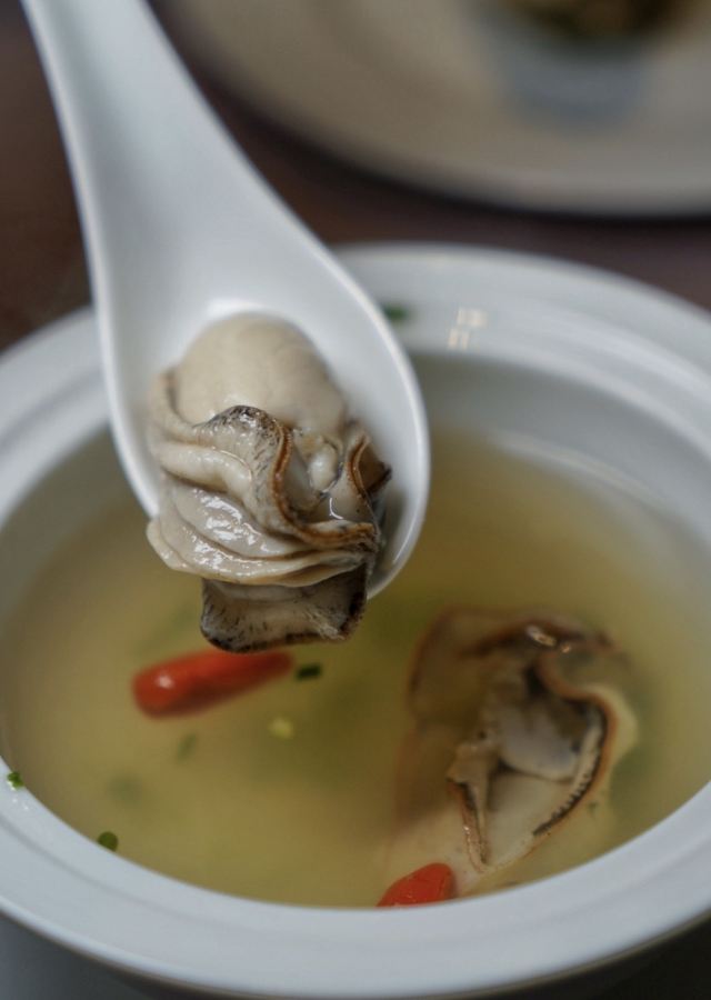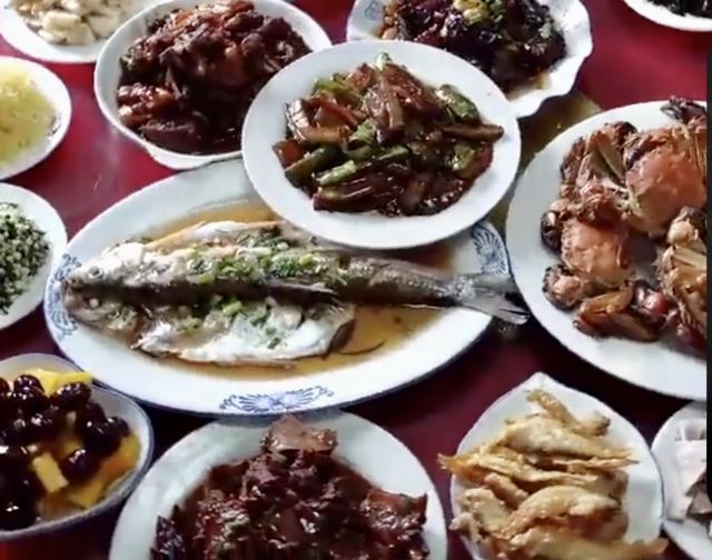 黄金脆带鱼,手撕豆腐,沙蒜烧豆面,樱桃鹅肝,鲳鱼烧年糕,越式牛肉粒,膏蟹,蜜汁红薯,花胶,杏仁薄脆,干巴菌炒饭,东海黄鱼