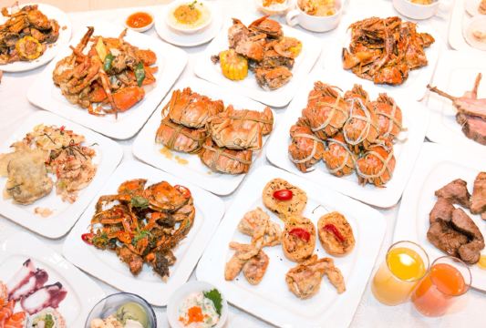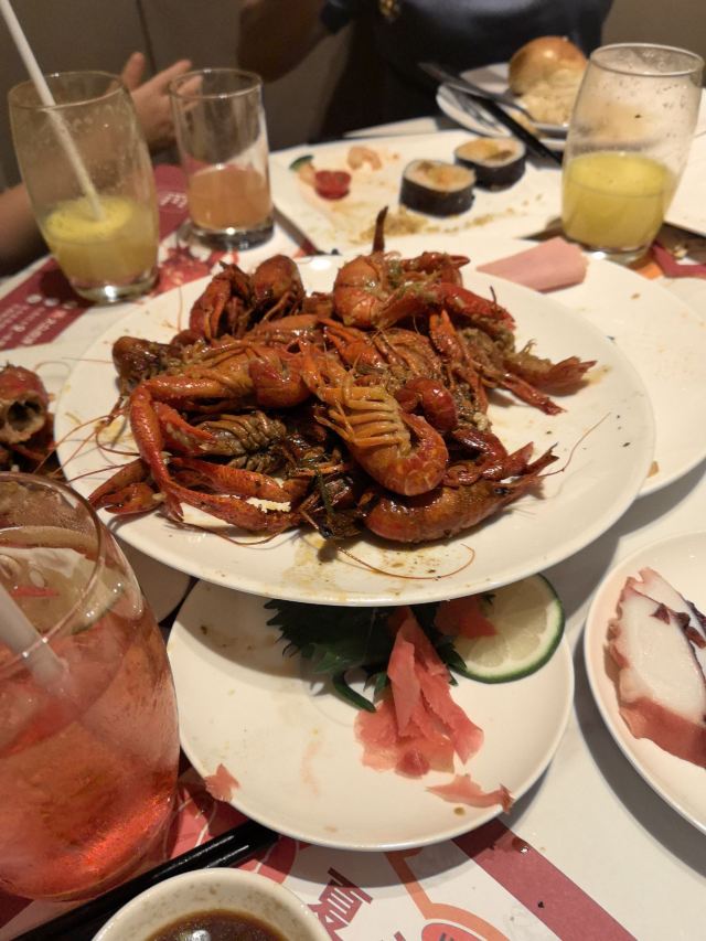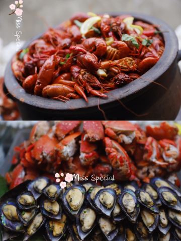 甜点,小青龙,冰淇淋,海鲜,炙烤金枪鱼,三文鱼披萨,现烤羊肉串,水果,各式风味小龙虾,三文鱼刺身,熟醉小龙虾,熟醉大闸蟹,面包焗海鲜,鹅肝,羊肉串,1.2米超大九宫格火锅,阿根廷红虾,小龙虾马卡龙,盐焗小龙虾,牛排,小龙虾小馄饨,日式刺身及寿司,小龙虾自助晚餐,舒芙蕾,小龙虾,佛跳墙,炒蛤蜊,锡兰红茶,红酒,茶饮
