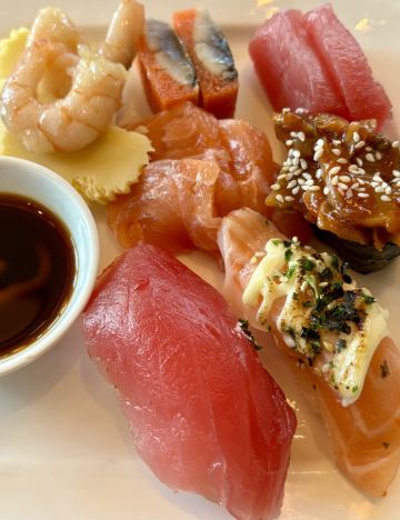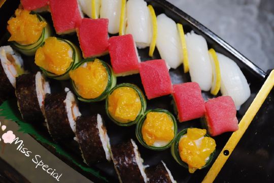 MissSpecial每次吃自助我都先挑日料吃起,那鲜嫩的寿司和刺身带着海洋的气息,蘸点酱油,那方式简单,然而滋味无穷。从刺身寿司再过渡到碗物、蒸物、煮物、烧物,一席餐充满回味。 去过了上海凯宾斯基大酒店元素自助餐厅好多次,每次都有新的变化。就像最近自助餐变成日料主题,简直是惊喜又大爱。 这里目前日料至少也有40多种,新增了各类寿司、手卷、铁板烧、关东煮、日式凉面、鲷鱼、鳗鱼…… 蒲烧鳗鱼是我最爱的一道,滑嫩香软的鳗鱼块,烧好后放在小面包片上,一口一只,回味有如鹅肝,简直是极品味觉。 盐焗火焰红螺色泽就很诱人,挑开鲜嫩的螺肉,盐焗的味道充满咸香,令人唇齿留香。酱烤马鲛鱼、日式味淋姜汁猪扒,都是米饭的绝配。日式蛤蜊清汤、牛油果鳕鱼色拉,让舌尖在鲜香的回味中又多一缕清新感。 每个桌子上还配了寿喜锅,可以涮牛肉,也可以涮海鲜。甜品鲷鱼烧太可爱了,红豆馅特别喜欢。此处下单,上还配了寿喜锅。把薄切的牛肉在其中涮涮,蒸腾的热气中吃牛肉,是寿喜锅最好的氛围。 甜品不马虎,同样有很多日式的小甜蜜、小清新。抹茶慕斯蛋糕和鲷鱼烧是最爱。软软的鲷鱼烧中有红豆馅,甜而不腻令人爱。