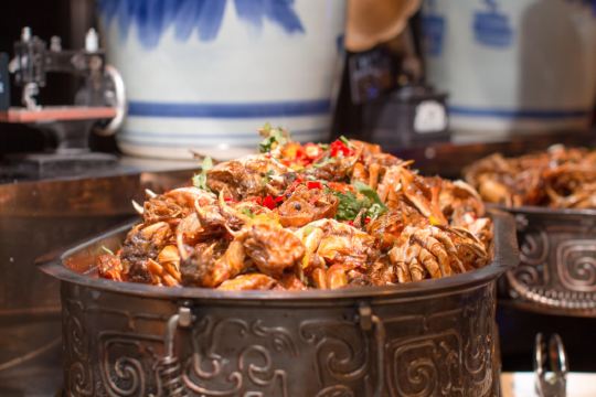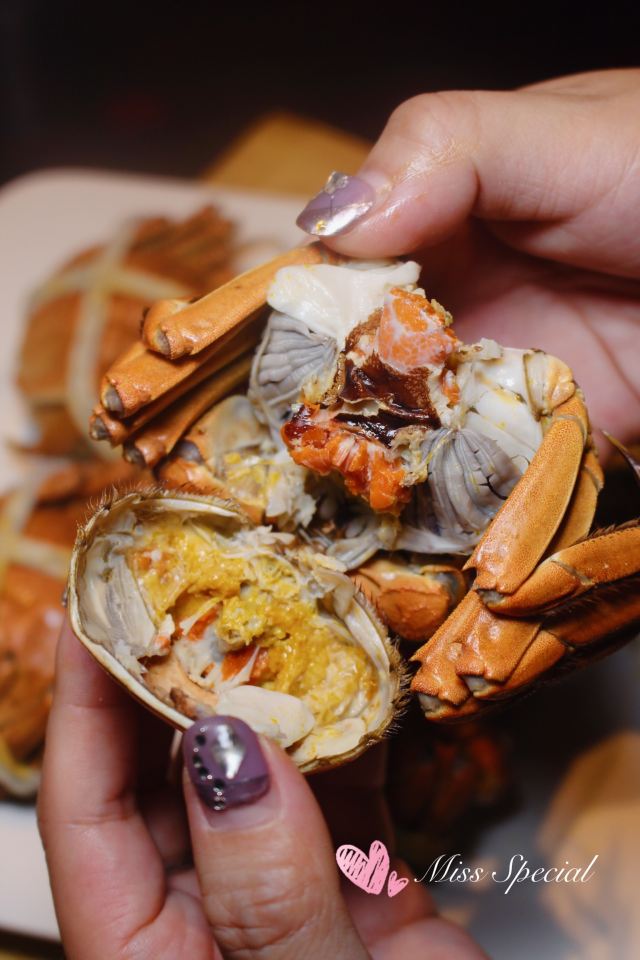 MissSpecial大闸蟹有多少种吃法?这家大闸蟹自助餐让人满足了食欲,更开阔了眼界 又是一年蟹肥时,仿佛所有的不开心都可以通过吃一顿蟹来化解,所有的辛苦都可以吃一顿蟹而感到安慰,因为那是等了一年才等来的美味。蟹黄在唇齿留香留香,蟹肉带着一丝鲜甜又透着质感的感觉,没有任何其他任何食物能替代这种喜悦。 优质的大闸蟹总是价格不菲,每每吃过总觉得意犹未尽。大闸蟹想要吃尽兴,定是要吃自助餐了。在上海凯宾斯基大酒店的元素西餐厅,推出了大闸蟹主题自助餐,除了平时已有的各种美味的中日西式美食,还加入了许多种大闸蟹美味。不仅可以畅吃大闸蟹,还可以见识到大闸蟹的N种吃法,在大闸蟹的美食领域,也算是可以感受全大闸蟹的经典吃法与精华了。 品味大闸蟹,首先要从基础吃法开始,那就是清蒸。清蒸不加任何调味料,考验的就是蟹本身的品质。在元素餐厅,每剥开一只大闸蟹都蟹黄满满,原汁原味地呈现那诱人的香。仅是吃蒸蟹,就足以让人满足了。 当然,感受不同口味的蟹类菜肴同样重要,在大闸蟹畅吃的自助餐上,有太多值得感受。 除了清蒸,尤能体现蟹黄饱满的就是熟醉大闸蟹,一只蟹一切两半,满满的蟹黄看得见。蟹肉中浸润着一丝酒香,充满了回味。 盐焗大闸蟹十分有特色,每晚只上两轮。蟹包裹在荷叶中,最外层再盖上厚厚的一层盐,如此不仅受热均匀,还令大闸蟹在烹制中浸润了荷叶的清香。 尤爱日式蟹粉牛肝菌炖蛋,特别鲜美细嫩,蟹粉加强了鲜香,令人回味。蟹粉小馄饨伴着鲜美的汤汁,在口中融汇,不仅好吃,还很暖胃。 如果你爱油炸食物的诱人香气,那你一定会喜欢酥炸软壳蟹和蟹粉油墩子。如果你爱酱香炒菜,那不要错过年糕炒蟹。如果你爱辣味,混椒香辣蟹可以满足你。 大闸蟹可以当主食吗?当然,蟹肉大阪烧,把蟹肉融于面饼中。满满的香气,饱腹感十足。 除了大闸蟹,各种国家风味的美食都不少。于我而言,有口感十分好的刺身和寿司,还有我丰盛的甜品,感觉很完美啦!