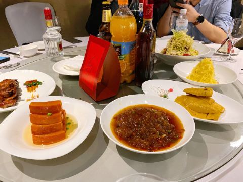 铁板煎A5雪花牛肉,蔬菜色拉,松茸汤,京葱辽参,特色麻球,石锅饭,虾仁卷,凉拌海蜇头,干煎带鱼,五谷辽参,招牌榴莲酥,冷菜的盐鸡,冻花蟹,清炒蟹粉,金牌烧鹅酥,清炖鱼翅,虫草炖鸡,招牌熏鱼,蒸东星斑,海盐煎雪花牛肉,澳洲龙虾,手剥河虾仁,干煎东海带鱼,石锅豆腐,海参盅,外婆红烧肉,酒香蒸红膏蟹,帆立贝鄂梨沙律,清汤松茸