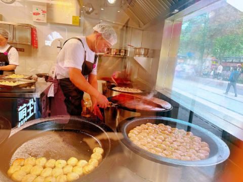 小杨生煎是沪上经典的小食店,以生煎馒头为招牌小吃,在上海有几十家连锁店,拥有“上海名点、名小吃”的称号。小杨生煎皮薄、馅大、汁多,生煎包配上牛肉粉丝汤,味道好极了。