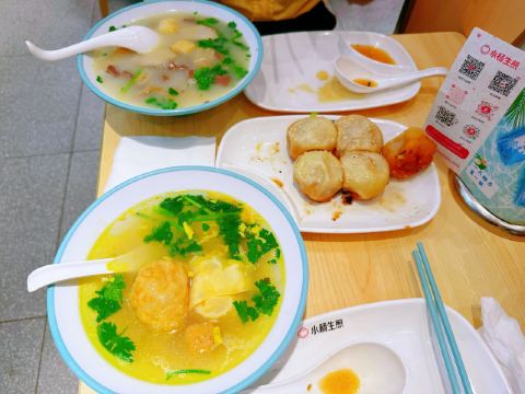 伊來东方明珠脚下的小杨生煎,是江浙一带有名的小吃连锁,主打水煎包和各色汤品。来东方明珠玩,上去之前一定要吃饱饱,走玻璃栈道受惊吓是跟容易饿的,小杨生煎的大虾生煎可以给游玩加分助兴哦。 【排队】工作日晚上去,不用排队; 【环境】整体环境是简单明快的,有电视塔可以抬头看看; 【菜品1】  菜品名称:大虾生煎  价格:¥20/两 ·生煎包最注重外焦里嫩汤汁饱满; ·不同于以往的生煎包,他们家用的是标准化的制作工艺; ·用塑料盘盛上来,分量适中,一个人吃刚好; ·甜鲜汁水灌满包子,经过煎制后,外观白里透褐,口感焦酥水嫩有满足感; ·要破一小口儿先将汤汁吸饱,能品味到甜鲜的口味; 【菜品2】  菜品名称:油豆腐牛肉粉丝汤  价格:¥14 ·粉丝汤最注重粉的选材、佐料的配搭与火候; ·不同于以往的粉丝汤,他们家用的是油豆腐倒灌的制法; ·用塑料碗盛上来,分量适中,一个人吃刚好; ·鲜亮湿粉,经过大火煮开下料加汤头后,外观金黄诱人,粉丝滑润鲜美; ·要边喝汤边嗦粉,能品味到热乎乎解气的口味; 【菜品3】  菜品名称:鱼丸汤  价格:¥10 ·鱼丸汤最注重鱼丸的成分; ·不同于以往的鱼丸汤,他们家用的是做馄饨的配搭与制法; ·用塑料碗盛上来,分量适中,一个人吃刚好; ·浑圆鱼丸,经过大火煮熟后,外观饱满,口感弹脆; ·要先喝汤,能品味到鱼味飘荡在水中的口味; 【服务】服务员态度一般,上菜速度还可以; 【适合】适合全年龄段人群用便饭的时候来; 【对比】和其它小吃店相比,更有江浙地方特点; 【位置】在陆家嘴的环路上;周边还有东方明珠可以玩; 【交通】建议乘的士前往,只需终点定位店名可达; 【优惠】用移动支付更划算;