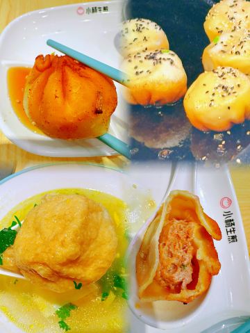 Xiaoyangshengjian (dongfangmingzhu)公司组织去浦东总部培训,中午吃饭自行解决,出地铁时我就留意到陆家嘴环路这里餐厅小吃店都紧挨着,盘算着这几天一家一家吃过来,今天先选小杨生煎。 环境:中午是最忙的时候,游客和附近公司员工都在这里用餐,虽然小杨生煎有二层营业面积但免不了排队,进门后就是收银台,看着菜单点单后拿上台卡号去找座位,一楼大厅整体还是干净整洁的。我们找的二人面对面座位并不大,桌子也小,餐具和餐品把桌子占的满满当当的,只能快点吃。可能这也是商家的用意,本来就是吃点心,坐的太舒服你就不想走了,吃的快点翻台率也高很多。 服务: 服务生很忙碌,会把我们点的菜品送到桌上,至于其他服务我也不好意思再麻烦这些劳碌的打工人。 口味: 【小杨生煎】生煎是每一季都会出新品,但我还是喜欢招牌 鲜肉生煎,轻轻咬开撒了白芝麻的皮一个小口,里面那一包鲜美的热汤汁还在,吸食汤汁蘸上米醋,鲜甜的肉馅和松脆的带点焦黄的生煎底丰富的口感带动着味蕾,真的蛮好吃的。 【老鸭粉丝汤】食材很充足,鸭肉、鸭血、鸭胗、鸭肠、油豆腐还有粉丝,汤头鲜美。 【百叶包面筋汤】汤很清爽,面筋有弹性里面鲜肉蛮新鲜的,百叶包也好吃,这碗汤我欢喜的。 和同事二个人吃完生煎出门时再看看明天吃啥哟。
