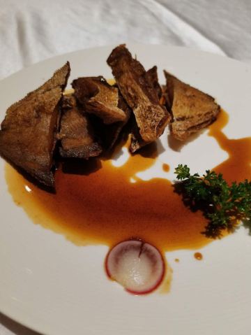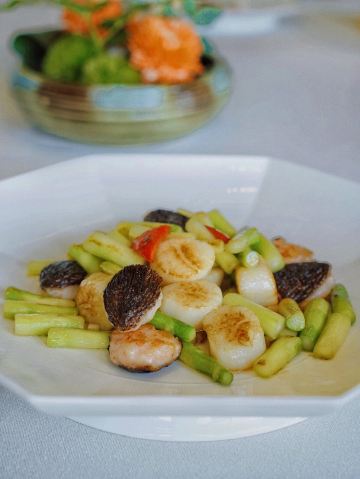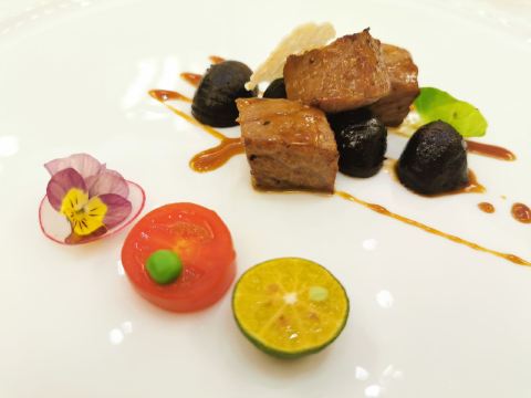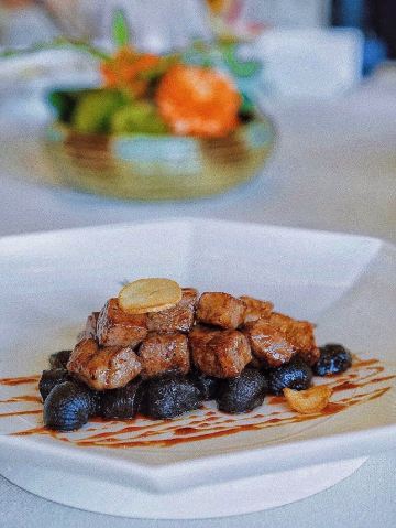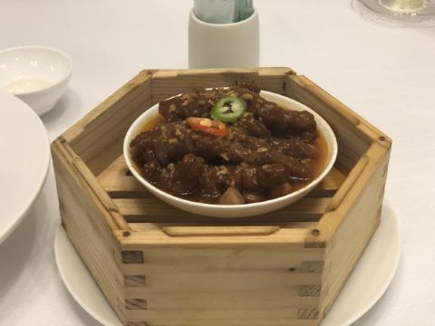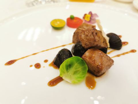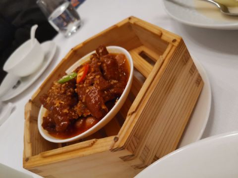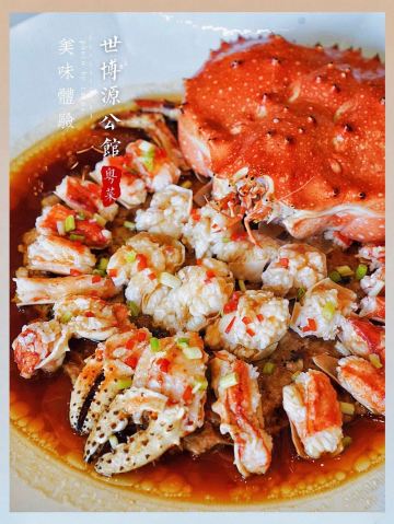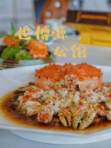 Shi BoYuan GongGuan藏于梅奔中心边的世博源公馆,坐拥黄浦江一线江景,一楼以宴会大厅为主,步入二楼竟别有洞天,九间风格迥异的精致包房迎合不同客人的喜好。 欧式宫廷风包间满眼尽是奢华享受,墙上的艺术油画、雕刻装饰、水晶吊灯、皮质沙发,让人恍若置身在法国的凡尔赛宫,全景式落地玻璃窗,静坐其中便可远眺迷人江景,从味觉视觉上打造立体化之全新感受。 🦀️陈年萝卜蒸帝王蟹🦀️ 帝王蟹腿每一段都会剪开,服务员分盘以后吃起来相当方便,用筷子挑起肉质紧实的蟹肉,花雕酱汁色香诱人,丝丝蟹肉鲜甜回甘,吸收所有精华的肉饼更是让人欲罢不能 黑蒜也是点睛之笔,口感绵软,酸酸甜甜如蜜饯般让人心生愉悦,与雪花牛肉的搭配很好地中和了油腻感,层次递进变化丰富,肉食爱好者一定无法拒绝~ 🥩黑金雪花牛肉粒🥩 顶级日本雪花牛肉,大理石纹理清晰可见入口即化,送入口中瞬间被澎湃肉香所征服,发酵好的黑蒜➕炸过的独蒜片➕浓郁的黑松露酱,所有的美妙滋味都融汇在这一小块牛肉粒中。 🐟麒麟蒸东星斑🐟 鱼肉去骨切片,游头摆尾漂亮极了🥳切片后的东星斑被摆放成麒麟的形状,由此得名,上桌超有仪式感,淋上特调酱汁,闻着香气飘逸,让人食指大动,鱼肉蒸得恰到好处,入口还有弹性,细腻又有层次的口感,相信没人能抗拒。 最后以精致唯美的小鱼儿🍮杏仁布丁🍮收尾,地道融合粤菜的味觉飨宴,尽在世博源公馆,游走风味人间,让人饭毕仍是意犹末尽☺️