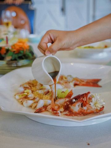 加油干饭呀世博源隐藏网红打卡圣地,自带空中花园的世博源公馆,用别开生面的饕餮盛宴,演绎一场颜味双收的粤菜传奇💫 景观包厢带你领略360°无死角的浦江美景,独占绝佳视野简直比观光游轮还要身临其境🏞 🧄五粮液独蒜黑边鲍🦪用五粮液来腌制鲍鱼,听起来就满满高级感,个头惊人的黑边鲍,口感却相当鲜嫩入味,浓郁酒香一口入魂。 美容养颜的🥥椰汁琼露花胶🥥,真材实料的椰盅堪比聚宝盆,集炖品和甜品于一体,饭前饭后两相宜,爱美小仙女们都给我选它选它‼️柔嫩的椰汁炖蛋入口即化,表面缀以养生滋补的花胶,吃进嘴里补在脸上,最后别忘了还有椰肉可以挖着吃哟~ 🐟麒麟蒸东星斑🐟有种锦鲤附体的霸气,现场浇淋酱汁使其充分入味,厚实鱼片筋道弹牙,称得上是老少皆宜的人间至味。 气场全开的🦀️陈年萝卜蒸帝皇蟹🦀️,全场C位非它莫属了吧,吃完以后感觉人生都开挂!霸气外露的帝皇蟹当前,其他虾兵蟹将便统统成了浮云,那份打动舌尖的细嫩鲜甜,真是叫人久久难以忘怀。 用蝶豆花为🍥鲜虾凤眼饺🍥穿上一件迷人嫁衣,清新脱俗的蓝紫色调,犹如身着青花瓷旗袍的窈窕淑女,再美好的形容词用在它身上都不会过分。
