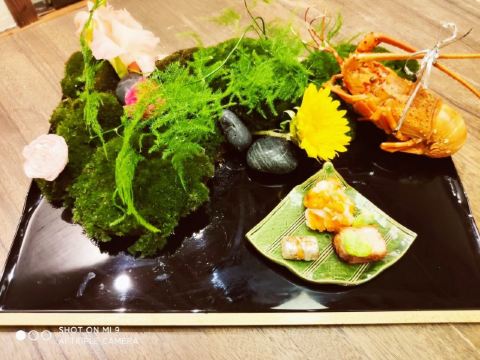 抹茶金枪鱼,日式烧汁焗生蚝,海胆啫喱,松阪5A和牛配松茸,大根糯米明虾饼,清酒,刺身,铃广清心汁,人参拌帆立贝,虎虾球,松阪5A和牛配松,斑节虾,松针银杏,三文鱼,三文鱼配温泉蛋,紫薯黄味烤,红叶麸煎饼,玉子卷,蒜蓉粉丝蒸扇贝,牡丹虾,和果子,丸十银杏,时蔬拌帝王蟹,日本进口哈蜜瓜,天妇罗,大脂,金目鲷刺身