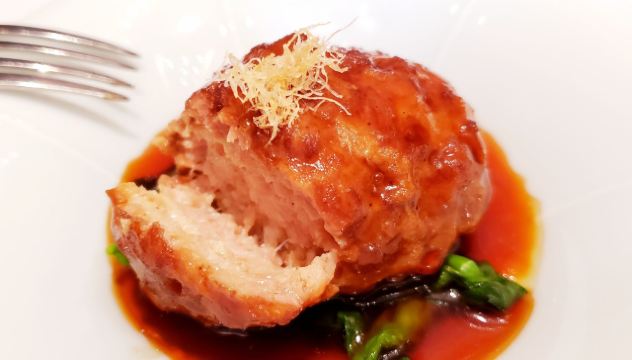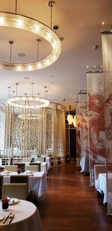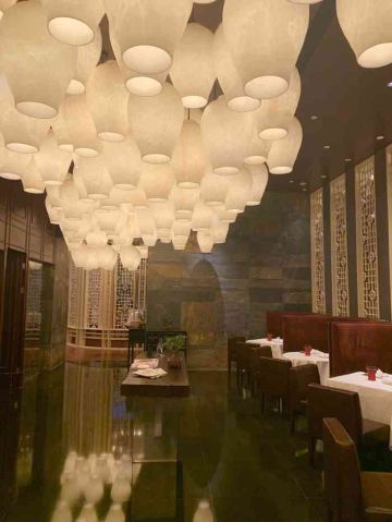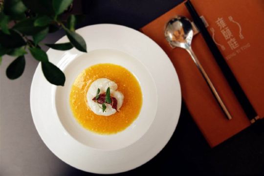 不可触碰撞的鱼雍颐庭位于上海浦东文华酒店地下一层下沉式花园旁的中餐厅,本帮菜、杭帮菜,摆盘很西式,口味不错。如同餐厅名字一般,环境雅致,桌与桌之间用轻柔的有着龙图腾的帘布隔挡,大厅孔明灯的设计,与五行等超具东方韵味的元素为整个用餐空间增添了不少意境。餐厅空间挑高,舒适而不失私密性;开放式厨房的主厨料理桌,你可欣赏到精湛的厨艺;六间包房各具风格,其中一间还可以直通户外景观花园。作为一家米其林一星级餐厅,这里服务员举止优雅,声音轻柔,会细心观察到你的需求,可谓训练有素,实至名归。鹅肝腊味南瓜蒸饭造型乖巧迷你,腊味切粒放在小南瓜中蒸制,混着米粒的香味,没入口却早已吊足你的胃口。桂柳干丝、雪菜黄鱼馄炖很有特色,人均500元左右。