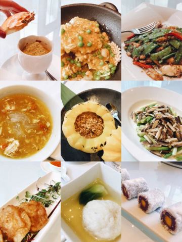 干邑红烧肉,上海熏鱼,虾干葱油拌面,茶香乳鸽,翡翠斩鱼圆,香椿酱象蚌仔,鱼子酱糯米春笋,马兰头香干脆腐皮,春韭蚌肉配吴山酥油饼,傍林鲜杏仁花胶汤,虾籽松鼠鳜鱼,厨房自制辣酱三门膏蟹,大白兔奶糖冰激凌,上海辣酱油烤牛肋,牛肝菌葱爆和牛,葱油拌面