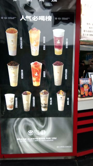 波波软芋牛乳,厚黑糖波波牛乳茶,血糯米酸奶,霸气五谷奶茶,草莓芦荟酸奶,野莓橙香鲜果茶,西米椰果奶茶,仙草西米奶茶,芝士稞麦四季春,爆打金柠四季春,霸气全家福,提拉米苏波波,手捣凤梨百香果,麦香奶茶,厚黑糖波波布蕾牛乳,血糯米奶茶,桃桃蜜柚,阿姨奶茶,芝士葡萄奶盖,双拼奶茶,芋圆奶茶,血糯米红豆奶茶,珍珠布丁奶茶,嫩仙草牛乳冰,绿豆牛乳冰