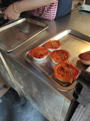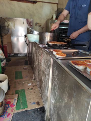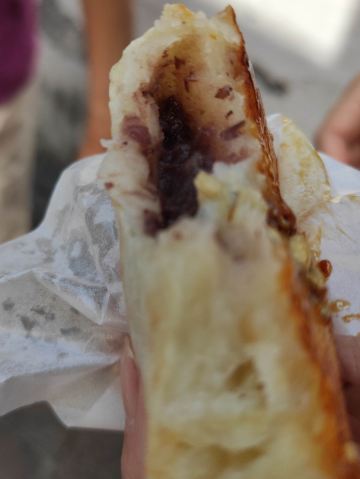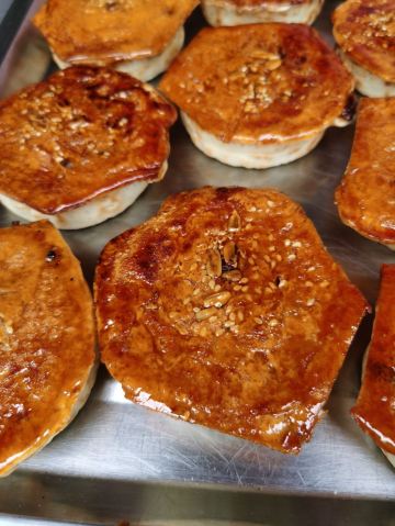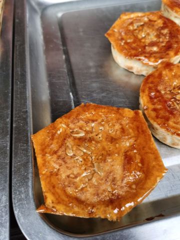 这家小店在桥头,热闹的新场大街上,面积很小,似乎只做海棠糕,得在门口买好就走,不然真影想交通呀。4.5元一个,虽然是现做的,依旧味道一般,皮挺厚的,有的地方面粉还没熟透,不过也无所谓,反正一个也吃不完,不喜欢那层粘粘的烘烤过的糖浆。一直觉得看海棠糕的制作过程过吃起来更还意思。