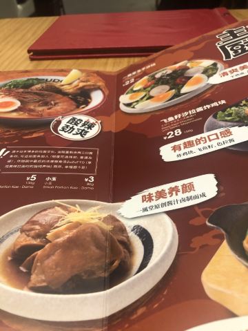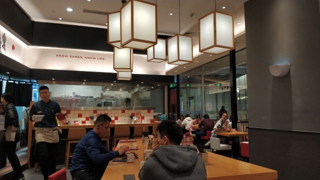 一风堂(国金中心商场店)以日式风格的拉面为主,白丸拉面,猪软骨担担面都是他们的招牌菜,味道都很不错,拉面很有劲道,汤料也是非常的浓稠,白切猪肉很好吃,总之是不错的选择。