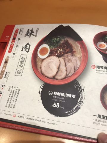 温泉蛋,爆裂豆腐,一风堂秘制炸鸡翼,赤丸拉面,焗土豆泥伴温泉蛋,章鱼烧,鸡豚双拼拉面,一风堂辣肉味曾拉面,炸紫菜墨鱼须,特制黑蒜油拉面,特制辣肉味增,博多棒棒鸡沙拉,白丸元味,豚肉炒什锦,爆炸豆腐锅,特制白丸,猪软骨赤丸拉面,一風堂秘制炸鸡翼,和风土豆色拉,和风煎饺,大阪烧,半熟蛋,一风堂秘制炸鸡,肉肉肉拉面,一風堂一口饺子