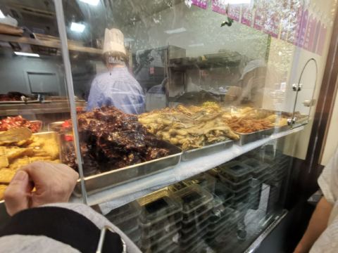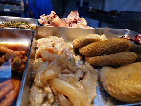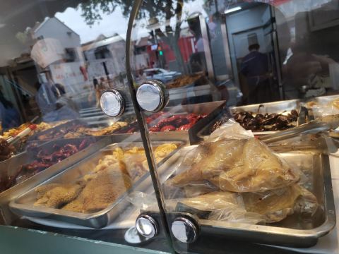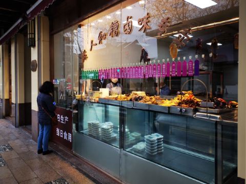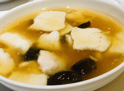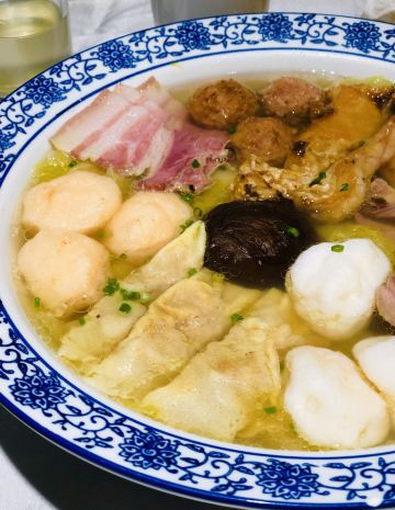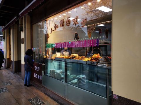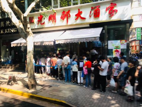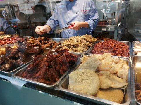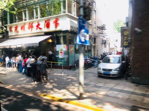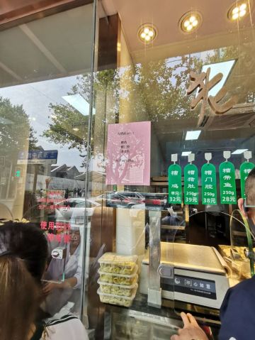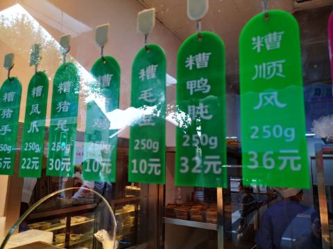 peachsai从新天地沿着马路走过来,穿过一个高架再步行个3-5分钟即到。一楼是卖熟食的,可能不是吃饭的高峰时间,所以也没有看到排队,不过一直知晓这个品牌的糟卤货很棒,天热没啥胃口的时候吃这些还是不错的选择。 有电梯直达3楼,跟朋友随意找个座位坐下开始点单,环境还可以,不过看着蛮国营的style。点了糟货几样,毛豆、醉鸡还有热菜糟溜鱼片,口味都不错,略偏咸。 所以加了一份糯米糖藕来中和一下,上面还撒了糖桂花,糯性可以。西芹百合,还蛮爽口的,百合吃起来有点微甜。白灼芥兰,带叶子的,如果去掉叶子我跟喜欢茎部的爽脆。浦东三鲜汤,居然有一只蚊子闻香而来结果当然是付出了生命的代价,活活烫死了。跟服务员沟通一下还是换了。看看里面货色倒是蛮多的,咸肉、蛋饺、熏鱼、肉丸等等,底下还有娃娃菜等,可惜了。换了一份咸肉老豆腐,一看是菜籽油做的,很农家,不过我更喜欢不是菜籽油的味道,所以随便吃吃了。咸肉有好几块,赶紧喝点竹蔗马蹄水~!