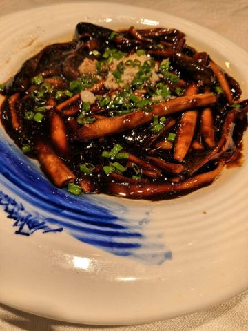 泡泡龙他爸老人和,这家饭店名字以前听说过,这次中学同学聚会,有同学负责订了这家餐厅。收到地址,发现是成都北路淮海中路口,以前淮海电影院的隔壁。订了包房,可以从下午三点起使用,进门告知楼层,服务员要刷卡电梯才能停那层。包房空间也极大,有长桌可以打牌。我是下班才到的,大圆桌可以坐十七八个人,我们11个,每人300固定价格,按人头数收费,不知餐厅就是这样还是同学先去商谈的。传统的本帮菜,烹饪水平相当不错,不远处的光明村没法与之相比,完全是不同的层次。服务没有国营企业的那种慵懒气息,能做的不能做的都很爽气。关键是菜烧的真不错,可惜照片开头没拍,在海外同学要求下才补拍了些,不够完整。这里以后可以考虑再来尝试一次。停车附近肯定不会很方便,据说停在巨鹿路上。算了,淮海中路还是漫步走走,好些时候没来了,又是一轮大翻修更新。份量十足,大家分头打包,带回家的第二天晚上烧了一碗双浇面
