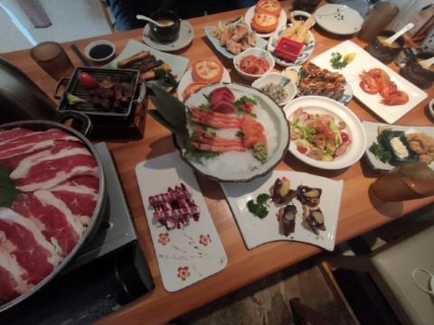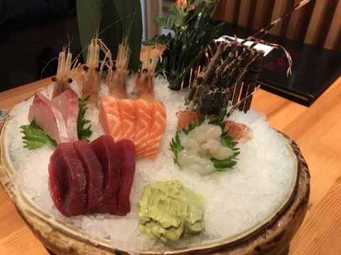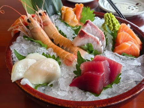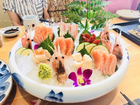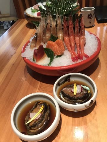 刺身大拼盘,法国鹅肝,甜虾,银鳕鱼,铁板牛舌,海胆,牡丹虾,烤鳗鱼,铁板大明虾,蟹宝,铁板三文鱼定食,牛油果色拉,铁板黑虎虾,刺身拼盘,雪龙和牛炉端烧,明太子烤虾,牛奶布丁,牛肉丝刺身,芝士明虾,可尔必思