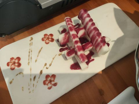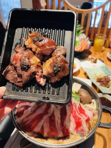 YoYo_3F4E0T1Z好久不敢在外吃刺生了,不过同伴约了来桃山,对于桃山的新鲜品质还是很放心的,于是提前订位,298和228的两种自助,选了298的,多了小青龙,海胆和海参汤这几个大料,小青龙刺生量不多,但是味道最赞,可惜只能点一次,小青龙和海参汤这种高档货是限量的,每人一份的样子,小青龙好像两个人是一只的量,感觉不够吃,牡丹虾是刺生中最接近小青龙味道的,新甜美味,三文鱼也OK,烤银鳕鱼味道也很好,鳗鱼有点肥腻,不过也OK,明太子烤虾,明太子味道鲜咸,很不错,蟹宝趁热吃也是超赞的,大虾天妇罗也不错,松茸汤很OK,热热的放在茶壶中,浇上小青柠的汁,酸酸的很开胃解腻,鹅肝面包也OK,雪蟹一般,牛肉一般,甜点都不错,布丁最赞,提拉米苏也到位,抹茶冰淇淋上面的草莓浆有点画蛇添足,不过抹茶冰淇淋本身还是OK的,总体超满足的一餐,吃足两个小时,满足满足~~~