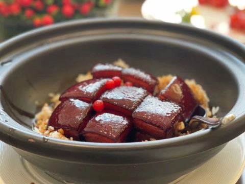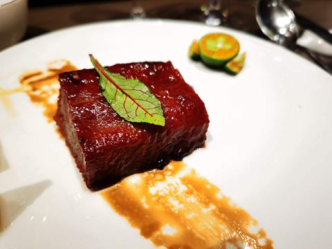 晨小小懒老上海叫这里中苏友好大厦,新上海叫上海展览中心,爷爷辈叫这里哈同花园。上海每年两会、团拜会都在这召开,标准的政治中心。 在这里吃饭举个不恰当的比喻是:去北京旅游,朋友说要不然人民大会堂吃个饭啊?😂😂😂章太炎在这里结婚,黄晓明也在这里结婚的。 关键是菜还真是很好吃。恒悦系的高级粤菜在上海做了15年了。由最早米其林三星香港新同乐厨房团队共同完成。 【金蒜小青龙】一定要点。 这是道新同乐老菜。只有蒜香没有蒜臭味,厨师说这个蒜很废水。开始没听懂,他说你以为为什么蒜臭味没有?因为流水冲上7个小时......真的很好吃。 【尚品牛肉】这是道新菜,用叉烧的方式做澳洲牛肉。第一次吃,超超超超级嫩。肥脂都有焦香味。 【金勾鲍】第一次吃这种做法的鲍鱼。三头鲍鱼,用避风塘的做法,外卖酥脆,里面仍旧保持着鲍鱼的嫩鲜Q弹。 【清炒胜瓜】恒悦最有名的招牌菜,碧绿,味道能够真的最到瓜的最最里面。 值得一提酒窖,上海排位第二,非常非常棒。酒鬼们期待下次羽绒服穿好,毛毯盖好,在酒窖里直接次饭!