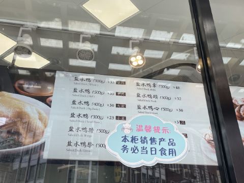 汤包,盐水鸭肫,鸭头,鸭舌,蟹粉小笼,鸭血,虾仁小笼包,菜饭,鸭肠,小笼包子,鸭肉,鸭翅膀,烤子鱼干,金陵咸水鸭,熏鱼,盐水鸭,老鸭粉丝汤,鲜肉小笼,老鸭粉丝汤X小笼,鸭心,金陵小笼包,美味鸭头,盐水鹅,三拼小笼,盐水鸭胗堂吃