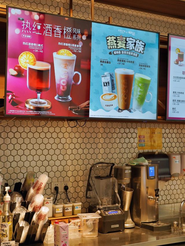 COSTA COFFEE谁能想到啊,冬天第一口咖啡竟然是“红酒”味的⁉️COSTA推出热红酒香橙风味咖啡,早C晚A星人必打卡‼️ 🍊热红酒香橙风味燕麦拿铁🍷 咖啡店里竟然开始卖“热红酒”❓🈚️酒精也上头‼️香橙和红酒风味的奇妙碰撞,100%还原“微醺”体验,搭配顺滑的燕麦拿铁,香甜浓郁一口就沦陷,明天打算再试试热红酒香橙美式🌝 🍰生巧可可瑞士卷🍰 用生巧做瑞士卷,真的太卷了!饱满浓郁的巧克力奶油,入口丝丝细滑,冻过之后冰冰凉凉,可可的苦味中和了甜,完全不会腻喔 总要为了这一杯“红酒”来一次COSTA吧💃老司机们也可以开怀畅饮,这样喝“红酒”,不怕查酒驾🧏🏻♀️