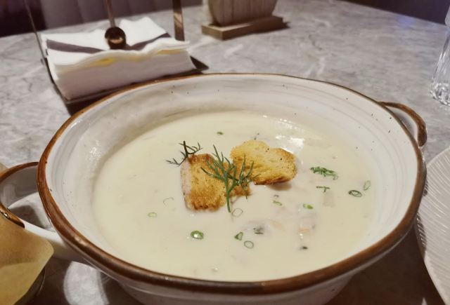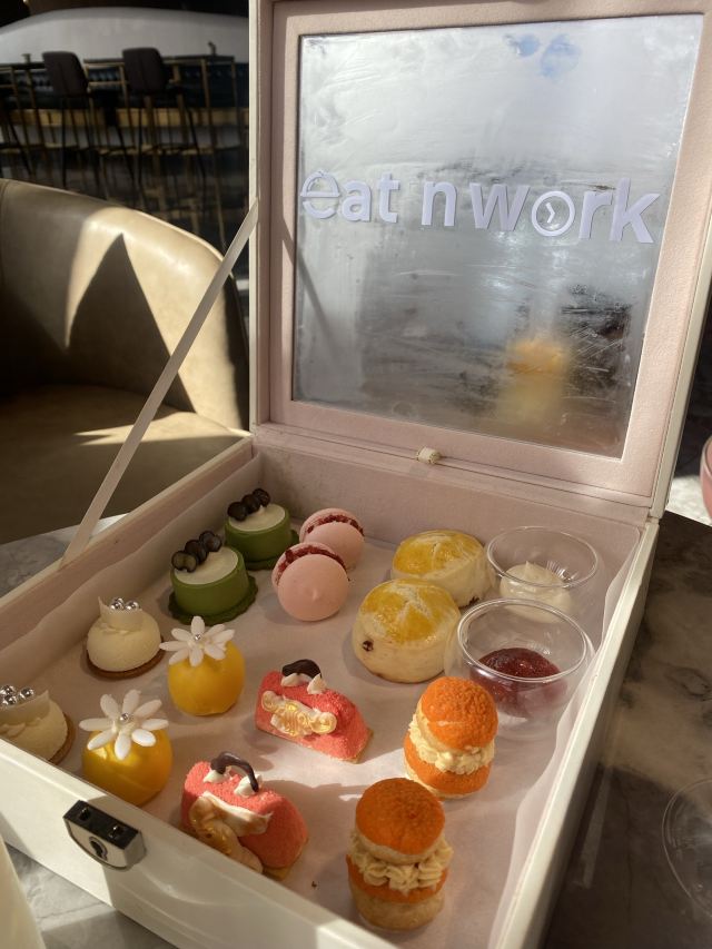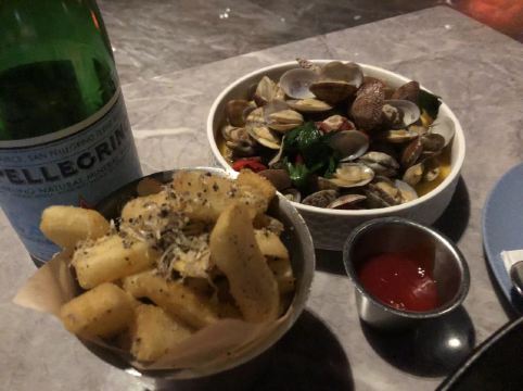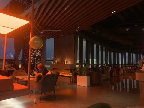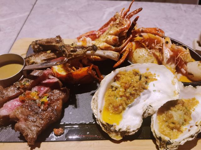 eat n work正大广场顶楼无遮挡外滩景观。 招牌海陆总汇的品类和量非常实在,两个人吃足够了。海里的有波龙、红虾、生蚝两只、带子,波龙半只不小,陆上的有牛排羊排。 蛤蜊汤浓香入味,圣诞节的甜点摆了个圣诞老人。 露台餐吧有很多网红打卡。室内也能看到很美的外滩景,即使不靠窗边的地面也是抬高的,所以所有的位置都能看到江景。 服务员很忙,看上去都酷酷的。