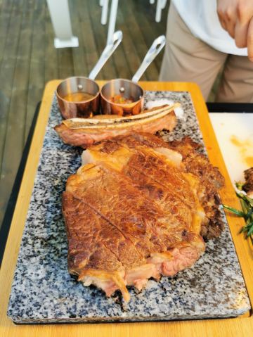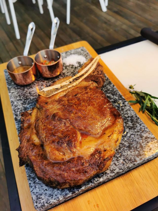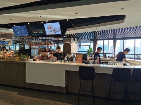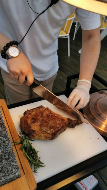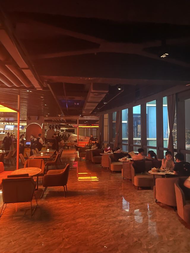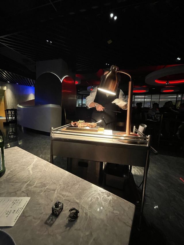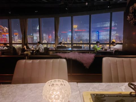 Randy吃吃喝喝看浦西外滩百年沧桑C位 正大广场已经很多年没来过了,以前还在这里招待过大老板、办过走秀,这家店看到过不同平台的推荐,一直想来种草,正好太太周末不出差,问了可以带小朋友,就一起过来了。 [薄荷]环境: 8-9的手扶电梯在维修,建议直达电梯。21点到的,正好有室内靠窗位空出来,赶紧安排。地方非常大,9层几乎大半是他家,还有露台,10层也有露台,不过没开。21点人还不少,这里是餐吧,过了餐点也能喝酒,开得蛮晚的。正对着对面的浦西外滩,这里是以前的俏江南。 [服务铃]服务: 安排位子很迅速,点菜能给出合理建议,上菜速度也蛮快的,不是严格的按道上,不过也能在合适的时间上合适的菜,如果不能确认,还会及时沟通。 [调皮]菜品 「意式火腿披萨」「考博色拉」「西班牙风味香辣蛤蜊」「老虎吃鸡」中规中矩吧,火腿披萨脆香脆香的: 「干式熟成战斧牛排800G」 有厨师现场展示切块,牛肉品质也不错,肉质鲜嫩可口。 「酒神畅饮」 188一位香槟和软饮料畅饮适合酒量好的。 总体而言性价比还不错,风景是赞的,而且周末小朋友也能玩比较晚,另外露台的玻璃房有低消也适合商务宴请。 #魔都美食 #上海美食 #外滩