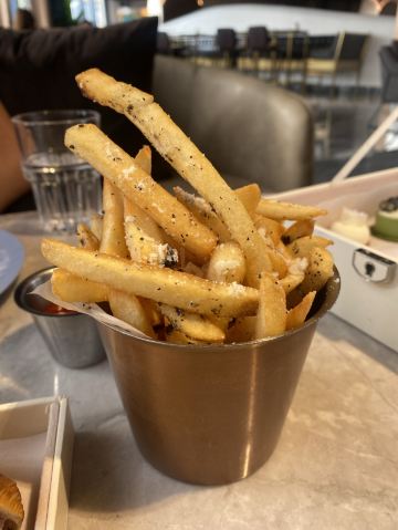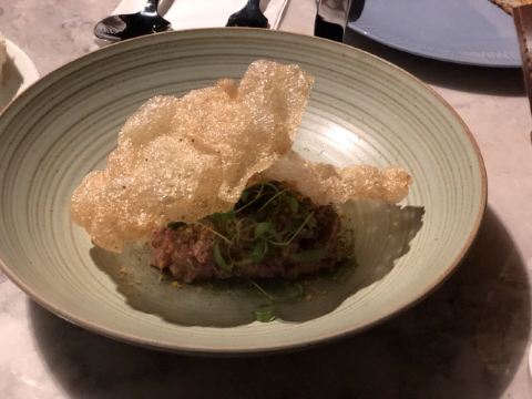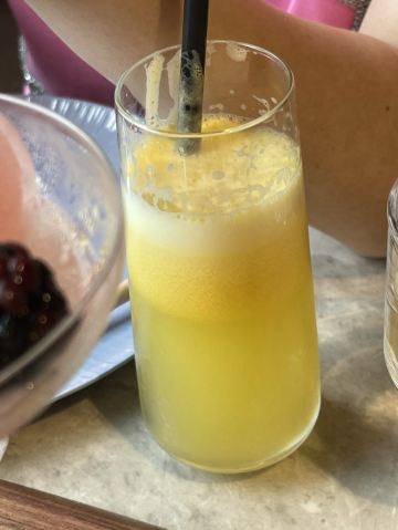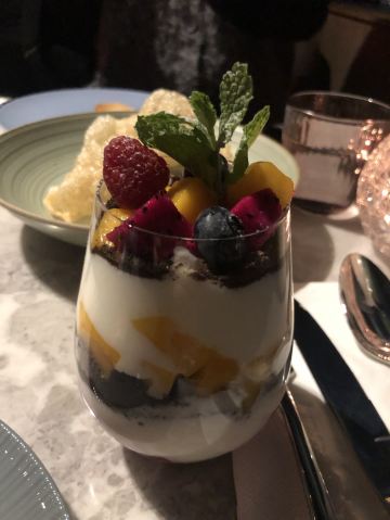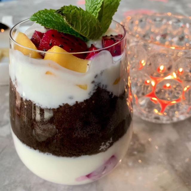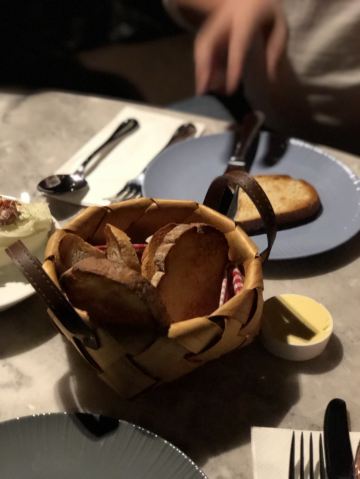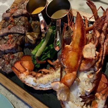 蛋花食游记位于正大广场9楼,联合办公下面的餐厅,坐拥陆家嘴一线江景,还有个露台,视野环绕一级棒,应该是上海性价比最高的江景餐厅了,主要供应西式餐点,丰俭由人。餐前面包烤得酥香松脆,就非常地好吃,涂上厚厚的黄油,非常地满足,但是这只是开头 凯瑟色拉配帝王蟹,造型十分地新奇,一整份生菜上桌,上满铺满了帝王蟹肉和凯撒酱混合的色拉,还有鱼子点缀,十足的升级版海鲜凯撒色拉,78元一份可以说性价比十分地高了。 主菜选的海陆双拼,牛排和波士顿龙虾的超级组合,搭配了海盐,5分熟的牛肉,肉汁丰盈,满口肉香南瓜酱和蘑菇酱,龙虾非常地新鲜,一劈二,连钳子里的肉都取出,入口弹嫩,空口吃也非常地美味,仿佛海的味道在口中回荡。 甜品点了玫瑰芝士慕斯,着实惊艳了一把,入花朵般绽放的高级西餐厅的摆盘。蛋糕松软甜滑,满嘴的幸福感。 如果晚饭后来,在这里喝上一杯也是非常棒的选择,女士可以点一杯Mocktail,看着游船不失为一道非常棒的风景线。