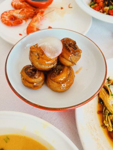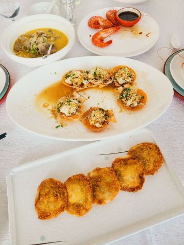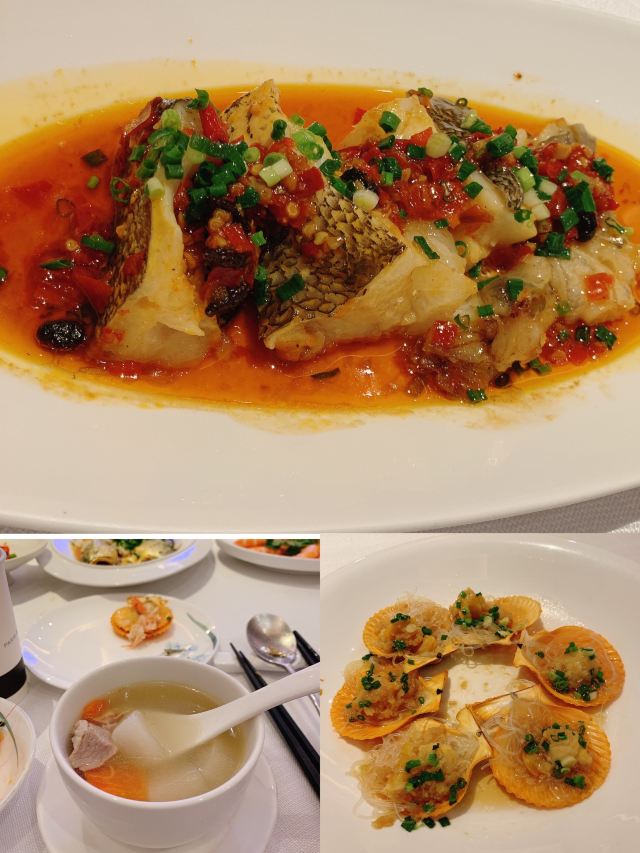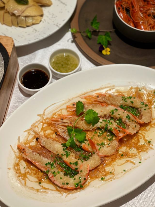 🌃能俯瞰滨江美景的餐厅,隐藏于北外滩的商务楼里,宽敞气派,又怀有复古上海感觉。 🦐熟醉大红虾 作为江南特色的名菜摆盘有意境,看上去仙气诱人。美食美景相得益彰, 大红虾个头大,色泽红润。赶快剥开吃起来。虾肉滑润有弹性,口感新鲜饱满。淡淡的酒味增添香味,使鲜甜更增色,值得回味。 🥘清蒸石斑鱼 石斑鱼营养价值很高,富含蛋白质、维生素等营养成分,是一种低脂肪、高蛋白的上等食用鱼,被港澳地区推为中国四名鱼之一。 鱼肉略红是深海鱼才有的,清蒸的烹饪方式最大限度保持石斑鱼的美味与营养。最后撒上葱花,淋上沸油,吃起来鱼肉丝丝嫩弹,鱼皮又香又糯,天然的胶原蛋白。 🥩醉辉煌炒饭 伴随着滋滋声香气四溢的上桌,舀上一勺、好多大颗牛肉粒,充满汁水的肥嫩牛肉与粒粒分明的浓郁炒饭,层次丰富。 停车场虽然大,但有专人指挥,电梯直达很方便,用餐后餐厅也贴心安排,无需兑换停车券,直接出去即可,商务宴请和朋友聚餐都很不错。