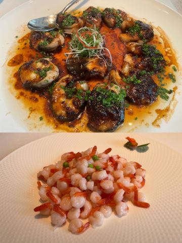 Swinng🌃能俯瞰滨江美景的餐厅,隐藏于北外滩的商务楼里,宽敞气派,又怀有复古上海感觉。 🦐熟醉大红虾 作为江南特色的名菜摆盘有意境,看上去仙气诱人。美食美景相得益彰, 大红虾个头大,色泽红润。赶快剥开吃起来。虾肉滑润有弹性,口感新鲜饱满。淡淡的酒味增添香味,使鲜甜更增色,值得回味。 🥘清蒸石斑鱼 石斑鱼营养价值很高,富含蛋白质、维生素等营养成分,是一种低脂肪、高蛋白的上等食用鱼,被港澳地区推为中国四名鱼之一。 鱼肉略红是深海鱼才有的,清蒸的烹饪方式最大限度保持石斑鱼的美味与营养。最后撒上葱花,淋上沸油,吃起来鱼肉丝丝嫩弹,鱼皮又香又糯,天然的胶原蛋白。 🥩醉辉煌炒饭 伴随着滋滋声香气四溢的上桌,舀上一勺、好多大颗牛肉粒,充满汁水的肥嫩牛肉与粒粒分明的浓郁炒饭,层次丰富。 停车场虽然大,但有专人指挥,电梯直达很方便,用餐后餐厅也贴心安排,无需兑换停车券,直接出去即可,商务宴请和朋友聚餐都很不错。