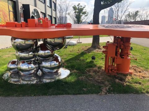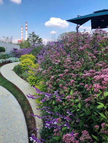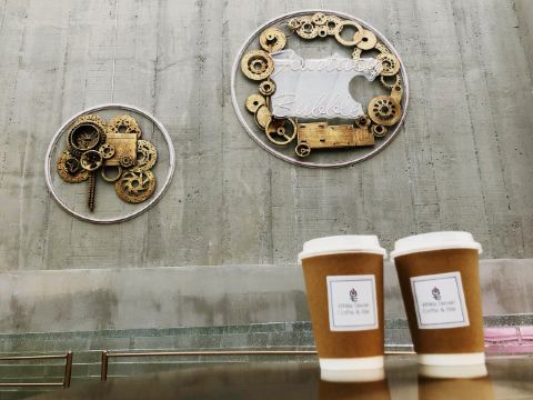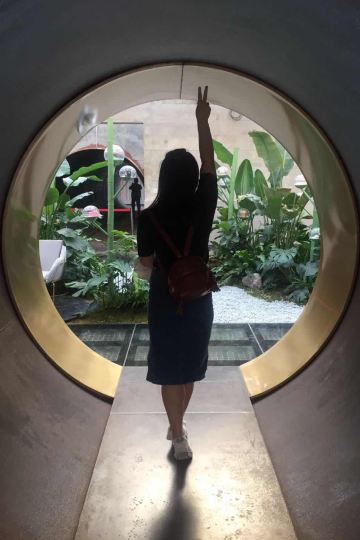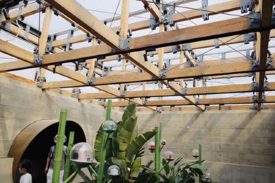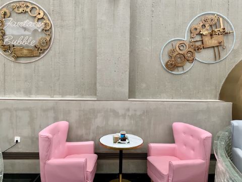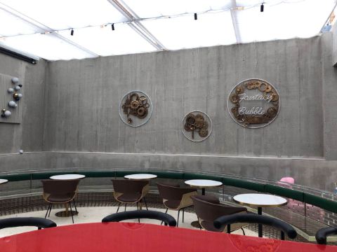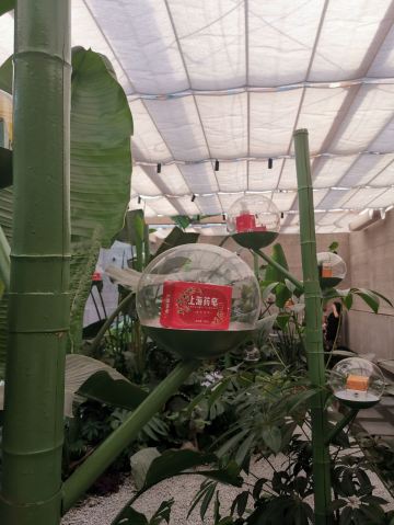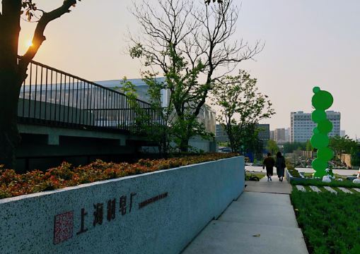 霞光升起“白七”——皂。 “白七咖啡馆”——上海制皂厂生产辅助区的老厂房。 这个由上海制皂厂老厂房改造而成的空间,随处可见齿轮、钢架、水泥墙面等工业元素,坐在这里喝杯咖啡会是一种怎样的体验呢?😝 这里原来是上海制皂厂的一套水处理设施,由几个大型沉淀池组成,这些池子大小不一,彼此间由管道相连。经过改造后,设计师不仅把原构筑物的形态呈现出来,还注入了新生命,现在成了市民游客休憩的场所。 房间的另一头,有一条圆形通道,通往“皂荚岛”微型展厅。 高低错落的绿植中,有几个水管搭成的展示架,凑近一看,上面放着透明梦幻的玻璃罩,里面摆放着上海制皂厂推出的一系列“明星产品”,这里就像是一个微缩的肥皂博物馆,十分新奇有趣。 透明泡泡里存放着上海制皂厂辉煌时期制造出来的肥皂,如蜂花檀香皂、裕华硼酸浴皂、上海香皂、海鸥硫磺香皂等等,透过这些肥皂,仿佛可以看到这里曾经辉煌忙碌的景象。 “上海制皂”——香皂的外观、奶油的绵密、点缀的椰子片(香皂所需原材料之一),组成一款别致的蛋糕。😄