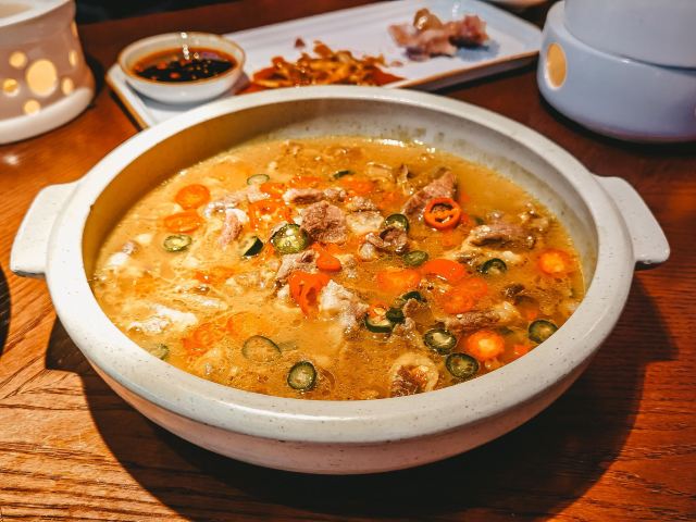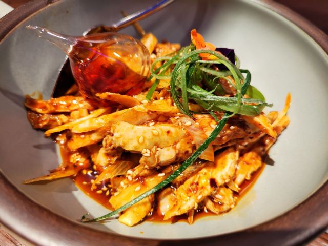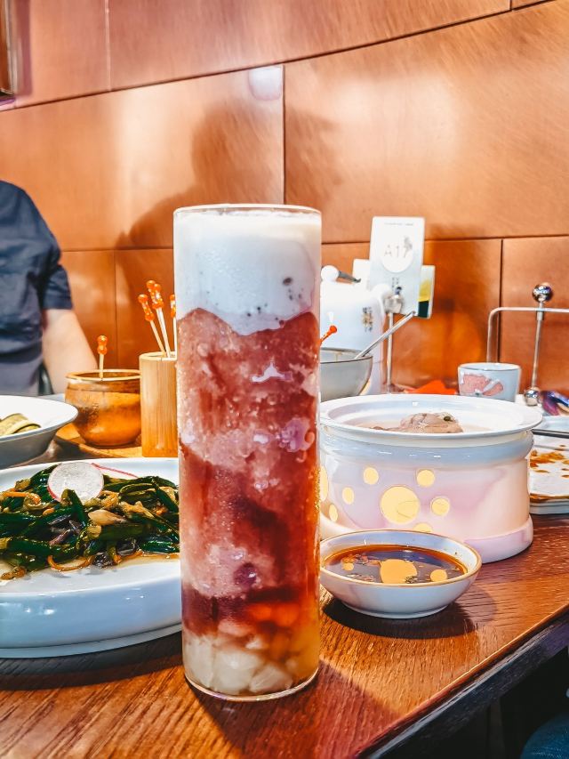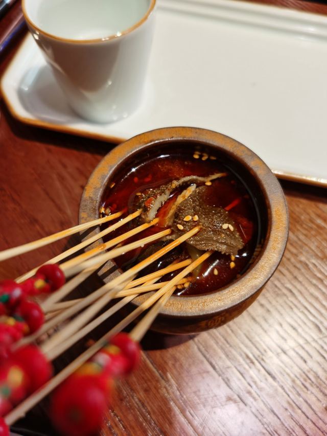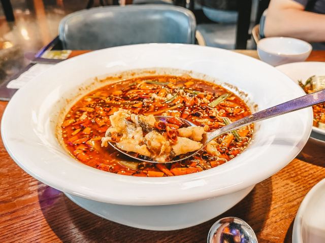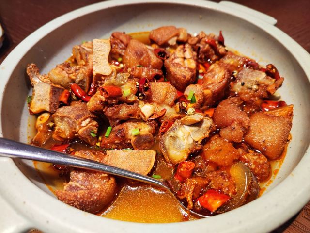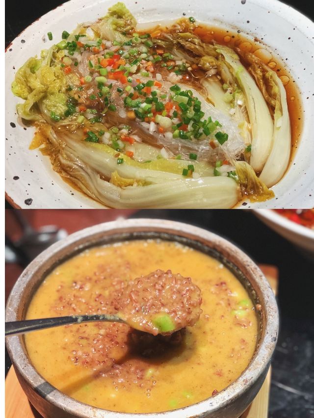 雪3飞who根据用餐者的喜好,排序如下: 🐔敲糖棒棒鸡(68元) 很有仪式感,甜中带着麻辣,推荐👍🏻 🥩蒜泥白肉(39元)、酸汤肥牛(128元) 食肉星人大爱之一,肉质细腻,调味出色。 🍡串串香(49元) 虽然没几串,但每一串都让人回味。 🥚野菌炒土鸡蛋(42元) 野菌的鲜和土鸡蛋的香组合在一起,效果double。 🐟红汤笋壳鱼(199元) 点的最贵的一道菜,但是并没有高出期望值的口感,就是……平平无奇(真的平平无奇😂) 🍜成都担担面(12元/例) ▫️老妈蹄花汤(20元/例)有点腻不喜欢。 ▫️墨鱼蛋酸辣汤(18元)也一般,就是普通的酸辣汤,墨鱼感觉有点多余。 ▫️鸡枞菌炒童子黄瓜(46元)在云南吃过鸡枞菌火锅,但是这种跟小黄瓜一起炒是第一次尝试,感觉不够鲜,黄瓜🥒倒是真的嫩。 🍺另外点了两款花色饮料:多肉葡萄(16元)和紫薯燕麦(18元),也是好评。特别是前者,很解辣。