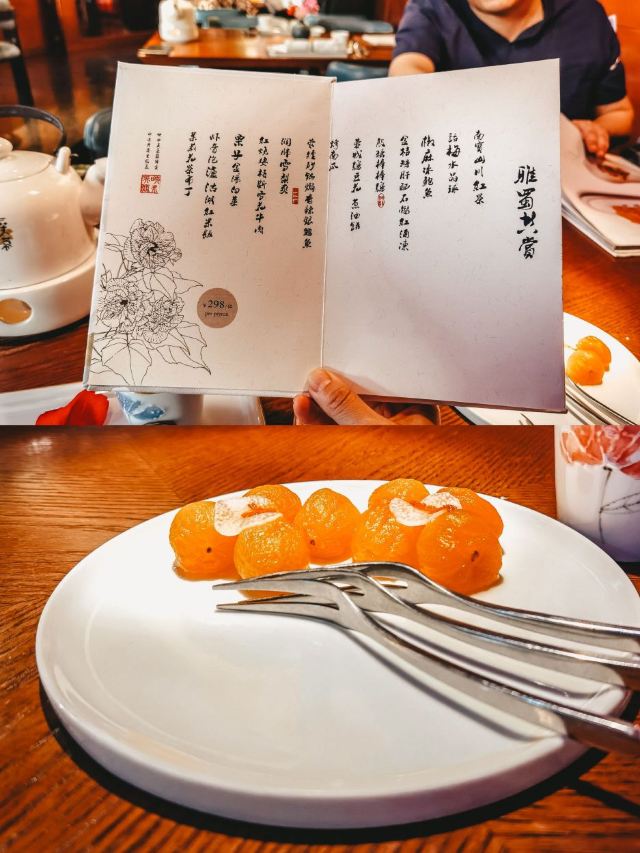 敲糖棒棒鸡,虾膏泡泸沽湖红米饭,宫保虾球,石锅发菜豆腐,金牌毛血旺,五彩鸡丝凉面,干锅牛蛙,冰粉佳人,精品花椒烤鸭,出水芙蓉(大份),餐前水果,椒麻安格斯雪花牛肉,出水芙蓉,沸腾笋壳鱼,招牌毛血旺,核桃沙律釀小番茄