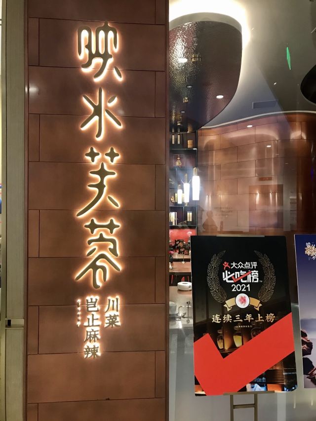 快乐的小吃货__早前就了解到映水芙蓉是沪上经典的川菜品牌辛香汇创立的新品牌,因为对辛香汇的印象一直很不错,觉得这个品牌菜品性价比高,而且口味还很不错,所以这次款待从成都来的朋友就选择尝试一下他们的新品牌。 🌿 餐厅位置挺不错的,从2号线中山公园站进入来福士商场,乘坐电梯到4层就是餐厅门口了。餐厅的装修典雅,诗意从餐厅门头的小景一直延续到餐厅内部各色中式元素装修上。入座后茶已在烹,用藤条扎着的餐布静静地躺在长方形的餐盘上,充满诗意。只是,翻看菜单的时候稍显失望——我期待这是一家主营创意川菜的餐厅,可是菜单上却是各色经典川菜,此刻非常担心这只是一家高价辛香汇。 🍲 【餐前水果】是糖渍的圣女果,我并不太喜欢圣女果的酸味,但是这家店的圣女果却十分出彩——剥了皮的圣女果糖渍得十分到位,果肉浸入了糖水,很好地中和了微酸的口味,口感也不像新鲜圣女果那么爽脆,而且软糯的口感,让人忍不住多来几盘。【敲糖棒棒鸡】食用前需要将糖衣中的红油敲碎后搅拌均匀,鸡肉选用的是鸡腿肉部分,鸡肉肌理吸足了红油,肉质鲜嫩,我和同行的朋友都一致认为味道很不错。【野山菌炒土鸡蛋】堪称经典,一块鸡蛋入口,川渝地区善用的菜籽油香气霎时挥发出来,这炒蛋简直令人梦回成都。【口味猪蹄】是猪蹄先卤后炸,后加入辣椒、花椒调成的酱汁中浸泡制成的,皮脆肉糯,而且猪蹄切成了小块,比较好入口。【栗子金汤白菜】的白菜在汤中炖煮多时,不仅菜叶吸入了鲜美的汤汁,而且整体口感是比较软,味道不错。餐后甜点【成都茉莉花茶布丁】堪称经典——入口能感受到一丝茉莉花茶的清香,奶精带来的香气紧跟着茶香散发出,成为后调进行收尾,这时不得不佩服菜品的研发能力,将几种味道调和得恰到好处。【桃满天下】是白巧克力作为外壳,内馅是一层奶油与橙子味的冰沙,只是不太确定这道甜品的最佳品尝时间是离开冰箱后的多长时间,因为这次品尝时吃到未化的冰沙和已经有些融化的冰沙,两种口感的揉杂略显奇怪,不确定哪种口感才是店家想要呈现给客人的,希望研发部门能给出比较准确的答案。此外这道甜点,除了外形与桃子一样外其他可谓毫无关联,希望能做到“表里如一”。 不得不说,整个一餐体验下来后,觉得映水芙蓉这个品牌虽主打的是经典川菜,但是菜品的设计、口味搭配都很用心,不似经典川菜那样过多使用辣椒面增添风味,但是却也带入了川菜的特色。