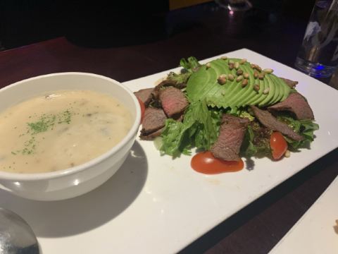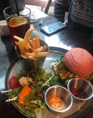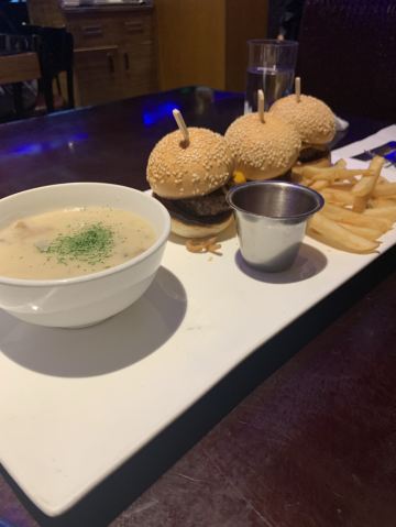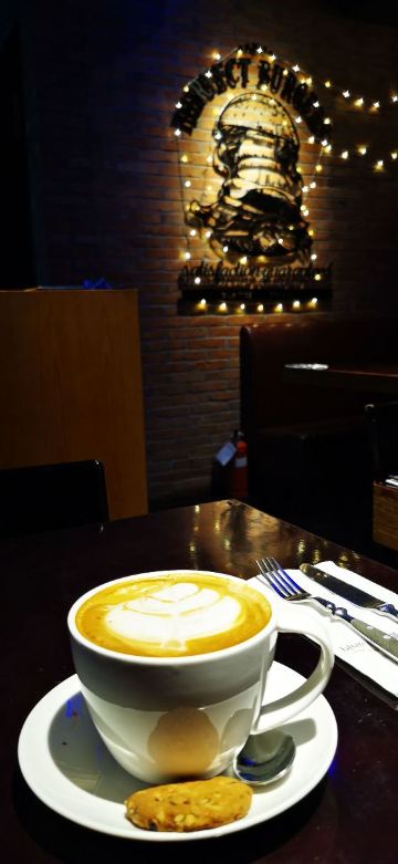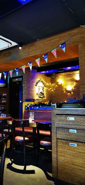 餐厅进门左侧是酒吧空间的设计,坐的都是高脚凳,一般中午都是坐在右侧空间的。有工作午餐套餐,也可以零点,选择相当很多,量都不小,有些品种量非常大,完全符合老外的肚量。服务生很勤快,反应很迅捷。尝试过多个品种,不管是意面、色拉、汤还是鸡排、猪排都做的相当不错,汉堡样子挺吸引人,饮料也和背景色彩融合。价格稍贵,但因为量很大,两个女孩子来可能点一份就够了,这样整体性价比还是不错的。可以用招行的掌上生活支付,有折扣。开票扫码,拿纸质发票。总而言之,不要给看来极其一般般的餐厅外观迷惑,要进去才能发现别有天地