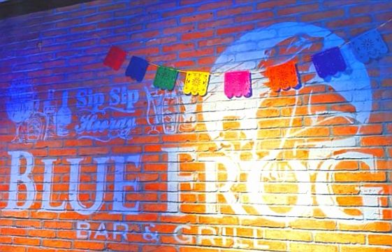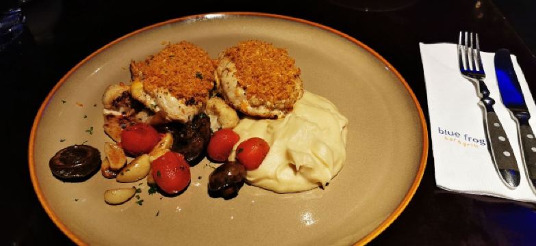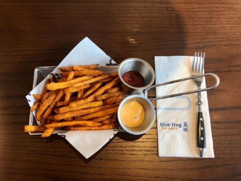 薯条,四重芝士牛肉汉堡,古典鸡尾酒,烤鸡翅,巧克力布朗尼,凯撒特色色拉,创意春卷拼盘,经典莫吉托,果味冰茶,松露风味奶油蘑菇汤,经典蓝蛙汉堡,蓝蛙炸鸡,蓝蛙长岛冰茶,珊瑚粉芝士狠浓牛肉汉堡,美式烧烤牛肉迷你汉堡,蒙大拿风味烧烤牛肉汉堡,牛肉迷你汉堡,墨西哥风味汉堡,蓝蛙辣鸡翅,综合烧烤拼盘,烩牛肉丸蘑菇意大利面,香浓蘑菇牛肉汉堡,清爽鸡尾酒,迷你小汉堡,二海三陆炙烤嘉年华