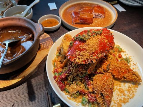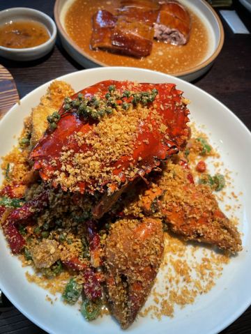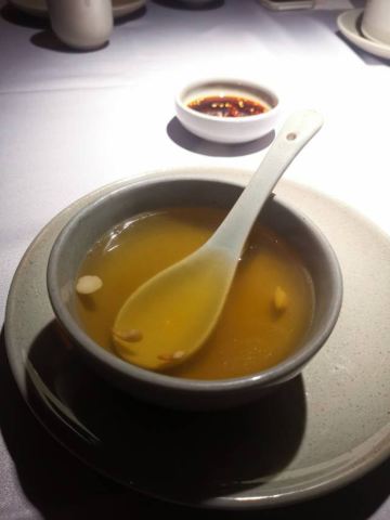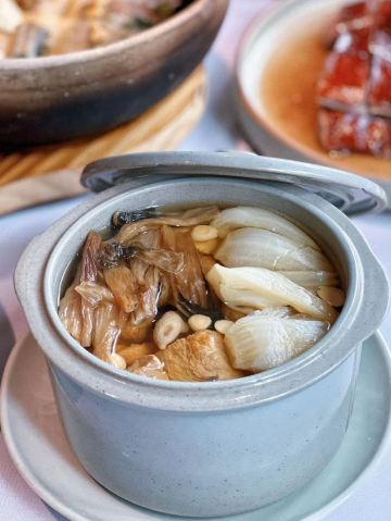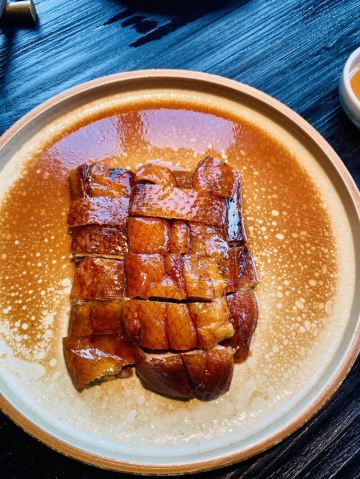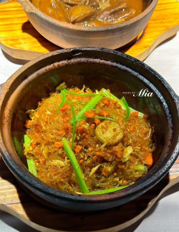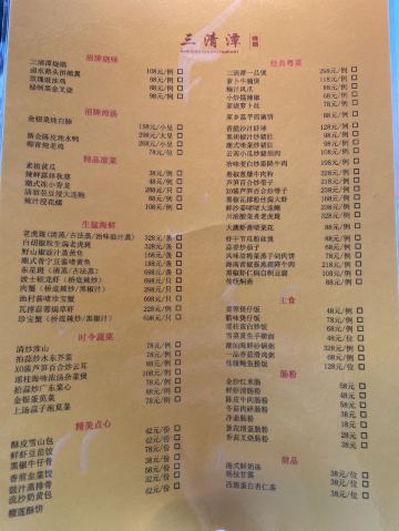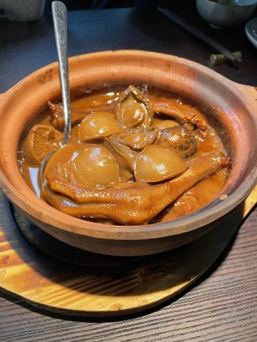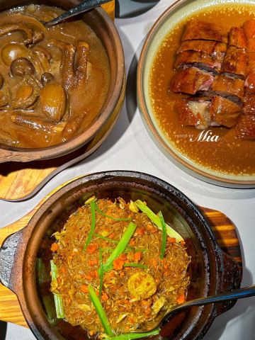 芝士香恋下午去了太古汇旁边的wagas的餐厅喝咖啡☕,和老公商量晚上吃什么好?正好看到太古汇里面的三清潭餐厅,决定进去试一试…… 环境: 没有太过昏暗的灯光,恰到好处的光源使餐厅看上去优雅又清净,就是沙发位置和桌子的高度有点不相配,后背靠不到腰上,吃饭有点累,有个靠垫就好了。 服务: 服务态度不错,会主动过来加水、打招呼。 「三清潭烧鹅」招牌烧鹅是现烤的,要等待二十分钟左右才能上菜,不过真正的美味是值得等待,皮脆、肉嫩、多汁、味道非常鲜美,沾上梅子酱解腻又提鲜。 「三清潭一品煲」又是一道港式招牌菜,糖心干鲍鱼发的刚刚好,鹅掌和花菇配上味道纯正的鲍鱼汁,非常正点,就是鲍鱼有点小了😋 「萝卜牛腩煲」一道传统粤菜,但是食材牛腩用的应该是安格斯牛腩,所以味道点赞!应该说厨师手艺一流,应该是香港请来厨师👨🏻🍳,菜单和菜品都是妥妥的港式版本,比上海的翠园做的更加地道……强力推荐!
