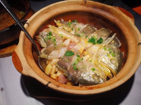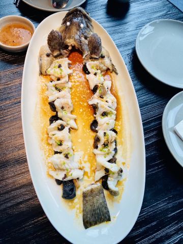 桃桃淘丽丝国庆假期请前前前同事们切饭,10大3小,老实说,这么多人,订在这里吃饭,不太合适....[白眼] 首先餐厅里没有圆桌,只能把三个桌子拼在一起,这样夹菜,非常不方便, 店里环境暗搓搓,大白天的也是,小盆友不喜欢[笑哭] 菜量都不大,不能点1.5份,只能点2份一样的菜品; 「三清潭烧鹅」,点了两份,左右↔️都可以吃到,肥而不腻,肉质紧实,确实蛮好吃的; 「普宁豆酱啫小黄鱼」,鱼肉非常的鲜嫩,入味,鱼刺也不多,我大概吃了半条吧; 蒸点不推荐,么撒特色,价格也不便宜,尤其是那个鲜虾豆苗饺,皮子都和蒸笼紧紧贴在一起,一用力,皮破馅出,完全不晓得吃的是什么; 餐厅唯一的优点,就是搞定了四辆车的停车券[憨笑]