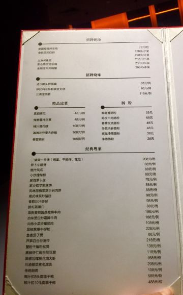 三清潭烧鹅,鲜虾滑肠粉,腊味煲仔饭,三清潭一品煲,鲍汁凤爪,萝卜牛腩煲,港式鲜奶冻,金银菜炖白肺,鲜虾豆苗饺,潮式普宁豆酱啫黄鱼,黑椒虾仁焖自制豆腐