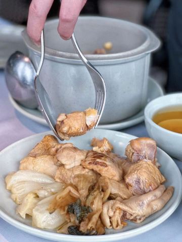自从上次陈记烧鹅之后对大鹅这个物种也是好感度倍增偶然在兴业太古汇看到了这家轮胎餐厅烧鹅想必也是必须来拔草的这家店生意可好在这个商场里不乏一些比较不错的餐厅但他家依旧大排长龙好在友人早早入场才得以准点入场讲真最近对吃饭排队这个事情竟然有点默默改观了看来民以食为天在什么时候都是没错的餐厅位于商场楼顶露台层所以还要换乘一小段电梯实用洁简的装潢风格倒也显得干净利落|招牌烧鹅^那是必须的下庄部分真的是集大成者肉质鲜嫩有口感滑而不腻好味道个人觉得这道菜本来的味道就已经很丰富基本上不需要用到蘸酱了|金银菜炖白肺^市面上做白肺汤的地方本就不多能出彩的那就更是凤毛麟角他家的这道汤属得上品白肺不好弄他家算是处理的比较干净也没有用太多的调味口感上比较清冽|普宁豆酱啫黄鱼^噢呦这个嫩噢那个香噢口感很好还是很有记忆点的一道菜综评比较小清新的一家人气餐厅菜品不错服务在线值得专程到访