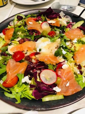 【环境】 被安排坐到了二楼窗口的座位,景观挺不错的~ 但环境非常拥挤,完全能吃到隔壁食客的食物,哈~ 【口味】 食物味道一般吧,|冷切肉拼盘^里的冷肉都很普通,芝士味道不错的,配|霞多丽霞多丽白葡萄酒^很OK~