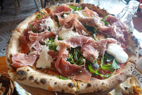本周末的天气实在好 太阳当空 气温回升 不出门都有点对不起这晴朗的天气 阳光洒下 走在路上暖暖的 马路上已经有人短裤了 时间刚刚好 如果赶得及 还能吃个brunch 东湖路是个不错的选择 因为有一家网红餐厅 路上没花太久时间 很快就到了 不用太费心思 门口大批等位的 就是他家没错了 一拿号 我去 大概一个小时 说网红也是有道理的 店里不但人多 而且相当国际化 大概扫了一眼 40%以上是老外朋友 这个比例显然相当高了 偶然听到几句对话也挺有意思 一外国友人进店询问 “要排多久”(很标准的普通话噢) 门口服务员小姐姐头也不抬的回了一句 “An hour” …… 角色互换来的 哈哈 如果进到店里面 其实整个装修风格很简单但却很欧式 很有代入感 当地小食店的感觉 披萨是这里的特色 量足 味道也不错 阳光从窗外照进来 不用太多 一杯咖啡一块饼 很享受的一个中午