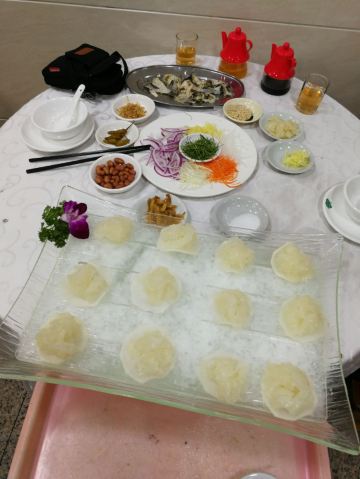 位于居民区的一家毫不起眼的风味小店,连店招牌都没有,这里是专门吃鱼生的,只有两种套餐可选,套餐包含一鱼四吃:最好的位置做成菊花鱼生,剩下的做成椒盐鱼骨、鱼皮凉拌、鱼头炖粥。