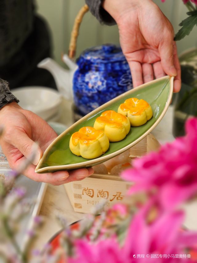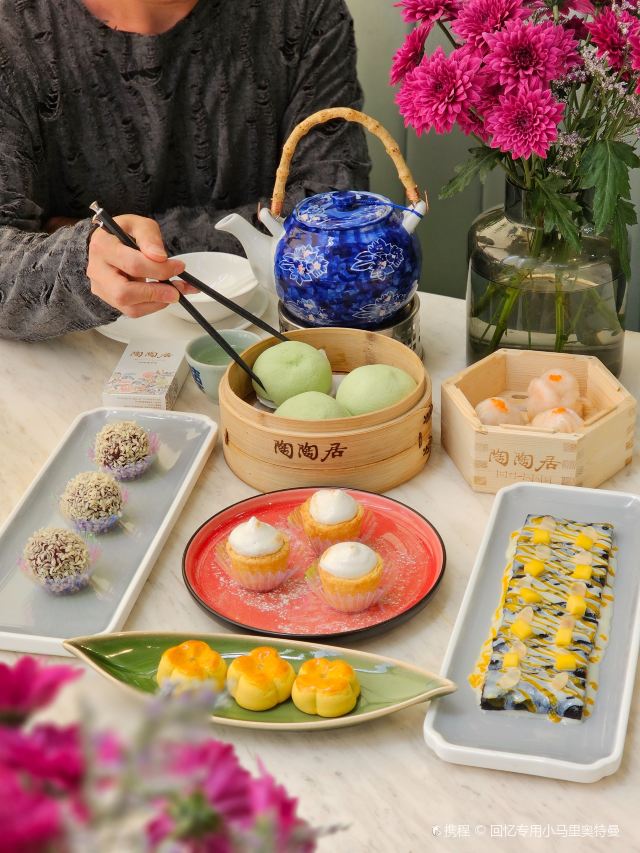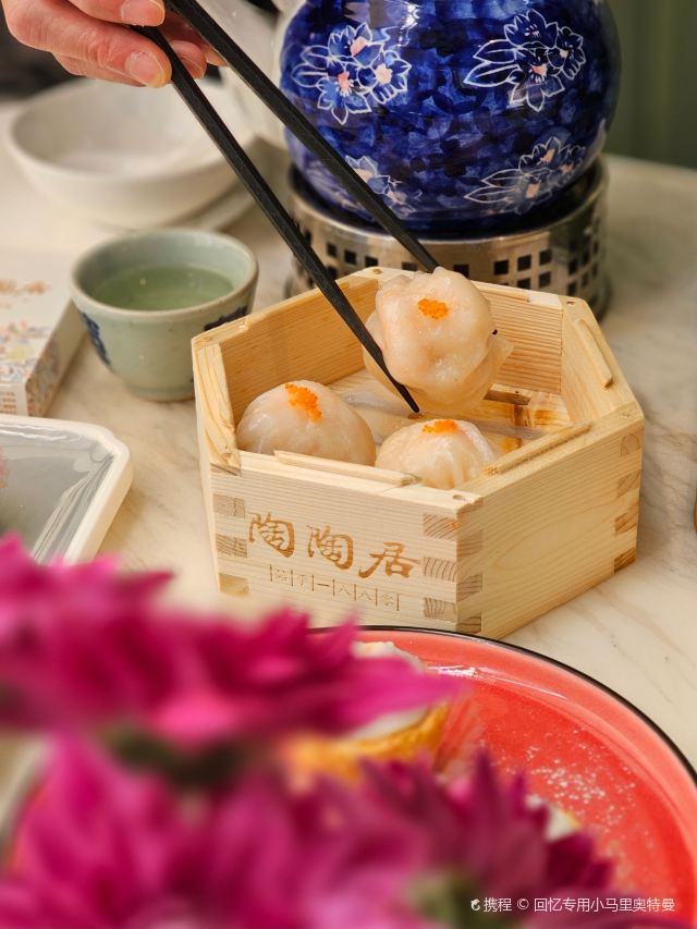 木海棠i#尝一尝地道老字号 如果有朋友跟你说:明天请你喝早茶,那多半是把你当成了自己人。 🍵早茶,是广东人享受一整个上午的聚会,放松心情,恢复和积蓄精神。 🌿环境: 这家陶陶居在壹方城,是庭院主题,去的时候是工作日,人不多很清净,环境很高档,虽然没有其他陶陶居的店大,但贵在小而精致美~随便一拍都是港姐风十足,清新绿色调更有一种悠闲自在风格,令人心情愉悦。 🐻❄️菜品: 我们点的是「陶陶居大虾饺」「酥皮水牛奶菠萝包」「明炉香滑靓葡挞」「叉烧包」「墨鱼籽香菇烧卖皇」 🦐虾饺,是每家茶楼的必制。上乘虾饺,皮白如雪,薄如纸,半透明,可略略窥见微红的虾仁。 🧸再者,还有豉汁凤爪,一口柔韧一口鲜,豉汁味美,凤爪迷人,吃起来齿颊留香。又因为凤爪富含胶质,可以保持皮肤的滋润,有养颜之效,我的最爱就是虾蛟,凤爪!