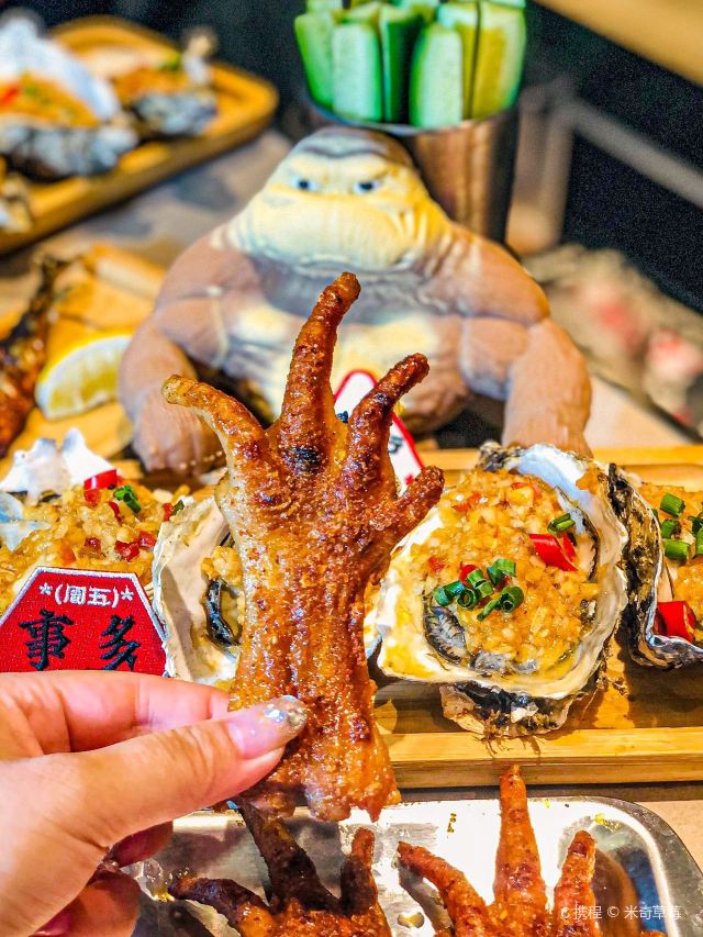 李昱莹🌸第六家分店也太绝了吧! 也确实是撸串爱好者的天堂,还实现了麻辣拌自由🤩感谢店家,还送了我萌蠢的解压猩💫 ✔椒盐酥脆鸡爪 啃鸡爪的绝配原来是带酥脆感🤳 ☺️外表看着平平无奇 鸡爪外层很是酥脆 软软糯糯感 椒盐味挺足 还Q弹 我们还加点了一份🥰 ✔蒜香鸡架 鸡架➕蒜香 喜欢吃鸡架的不要错过‼️ 鸡架肉质紧实 细腻而鲜香🙆 回味无穷~ ✔黄金碟鱼头 端上来就香迷糊了 开盖后看到碟鱼就颇有食欲 肉嫩得香 还搭配🈶土豆大蒜 相当美味 「破店麻辣烫」 破店家的麻辣烫一份就馆饱了 还用大盆给装着 裹上红油气息,使得菜品也很香浓可口🤩 ✔湛江生蚝 肉质很是饱满 肥嫩而多汁 💕还有着口口鲜甜的出品 ✔桂花西红柿 桂花香气宜人 跟西红柿搭在一块也挺清爽 有着抗氧化美白的功效哦💯 破店肥哈·东北烧烤(科技园店) 📍深圳科技工业园6号 #拔草大牌餐厅 #拔草网红餐厅 #安利这家宝藏餐厅 #宅家最怀念餐厅 #打卡明星同款餐厅