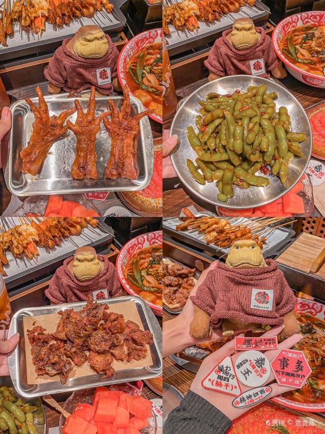 幸福街道-东北烧烤排队王——破店肥哈·东北烧烤 超人气全国品牌连锁店 在深圳已经开业第六家分店啦❗️ 📍📍这次选址在南山科技工业园 圈粉无数,又是要火爆的节奏🔥🔥 . 🌿『特色』 酒足饭饱之后来一波放松解压 捏捏乐解压大猩猩🦍 泥沙手感的发xie玩具 [加油]大猩猩肌肉线条明显 会弹力很强,随意揉拉扯打🤛🏻 是上班族解压的秘密基Di . 🌿『环境』. 🛢统一装修风格,工业风 🪨偏暗色系,整体是做旧效果 🧻 一进店就看到悬挂在空中的纸巾 特别的设计 💖用餐氛围热闹而不嘈杂 . 🌿『出品』. 『东北烤串』 🍢东北特色烧烤,味道偏甜口,烤串种类多,选择也丰富 1️⃣一口大牛肉:牛肉超厚,一口下去超过瘾,任性十足 2️⃣天梯:猪上颚,顾名思义,形似天梯而得名,吃着🈶韧性,🈶嚼劲 3️⃣芥末月牙骨:脆骨嘎吱脆,干香入味,吃着有淡淡的芥末味,味道很特别 4️⃣烤鸭舌:鸭舌处理的很干净,吃着也没有怪味,味道很香,适合下酒 . 『沈阳鸡架』. 🐣每次吃破店必点鸡架,份量足,口感香脆,味道微甜,越嚼越香,根本停不下来 . 『麻辣烫』 🥡喜庆的餐具,丰富的食材 食材是红薯粉和素菜 粉丝➕鹌鹑蛋➕豆腐泡➕菇类➕木耳➕油麦菜➕午餐肉 🌶微麻微辣的味道非常适合我 这次吃到的比之前更符合我的口味 . 『绝味拌毛豆』 🥗毛豆裹满了酱汁,吃着满口的蒜香味和花椒味,入口呲溜滑,咀嚼有脆感,颗颗饱满 . 🌿『服务』. 🛎服务到位,接待积极,热情有耐心 上菜很快,餐后还赠送了水果,🍉西瓜很甜 . 🏠店名:破店肥哈·东北烧烤(科技园店) 📍地址:深圳科技工业园6号(LIFE JOY一楼) 🚆交通:地铁1号线深大站A4出口步行600米