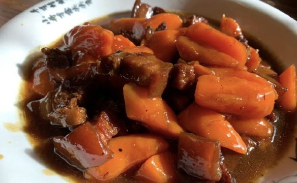 山南县的乃东区是中心位置,饭店餐馆比较集中,在山南宾馆附近就是“人民食堂”。 各地都有类似招牌的革命风格饭店,一般都是价格实惠,菜式丰富,味佳量足的,所以不要犹豫了,进去就是了。 木桌木凳返旧装修,上来几个家常菜,立马开动!
