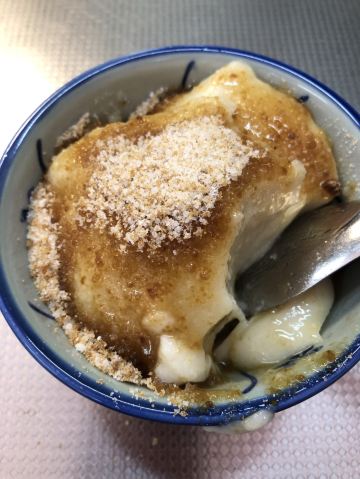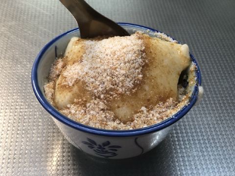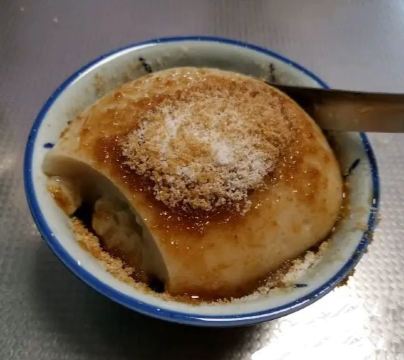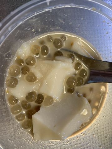 生意火爆,经常排起长龙,整碗豆花没有任何水分,从大锅里盛出来之后直接洒上糖粉,一碗豆花便完成了。另外还有西米露和龟苓膏,西米露无功无过,龟苓膏跟豆花一样黏稠度高,不苦,上面洒满了砂糖,清爽健康。