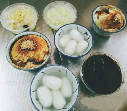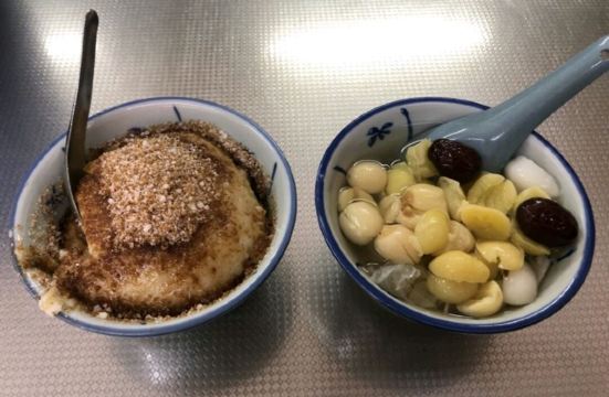 豆花,鲎粿,桃胶芋圆,薏米,西米露,糖粉,绿豆爽,五果汤,手工鸭母捻,百合汤,草馃,无米粿,鼠壳粿,菜头粿