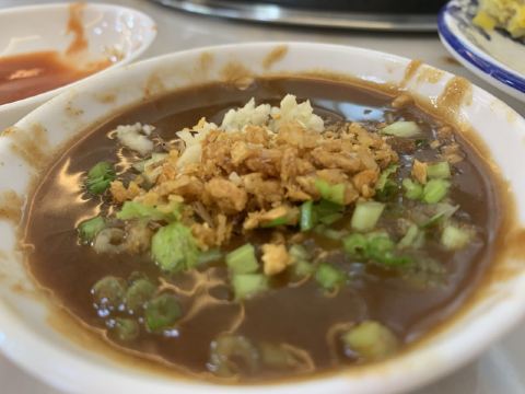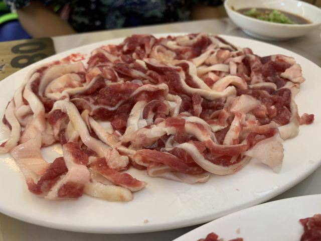 再好吃的东西,如果排队30分钟以上就不会去凑热闹,至少在上海我一直如此。但这次在汕头,为了吃顿牛肉火锅,从手机取号到入座,一共经历了四个小时!在门口等位时,一度有工作人员出来询问,如果一小时内吃完或者愿意拼桌就可以先进去。想想这样的体验实在不佳,就咬了咬牙继续等,期间还叫了凉茶外卖,好多人都这么干。晚上七点半,终于可以进去坐了,店里环境么是比街头小破店稍微好点,够凉快。然后这个牛肉火锅呢,我也不专业说不出所以然,吃还是好吃的,但绝对不值等待几个小时。价格也算便宜,四盆牛肉、两份生菜、一份牛肉丸、一份炸豆皮,才200块出头。这要在上海,敢情得翻个倍了吧(因为很少吃,所以不太了解),更何况这里的肉更新鲜。按汕头本地人的说法,其实去哪家吃都一样,只不过这家会做营销,吸引大堆游客去吃了。